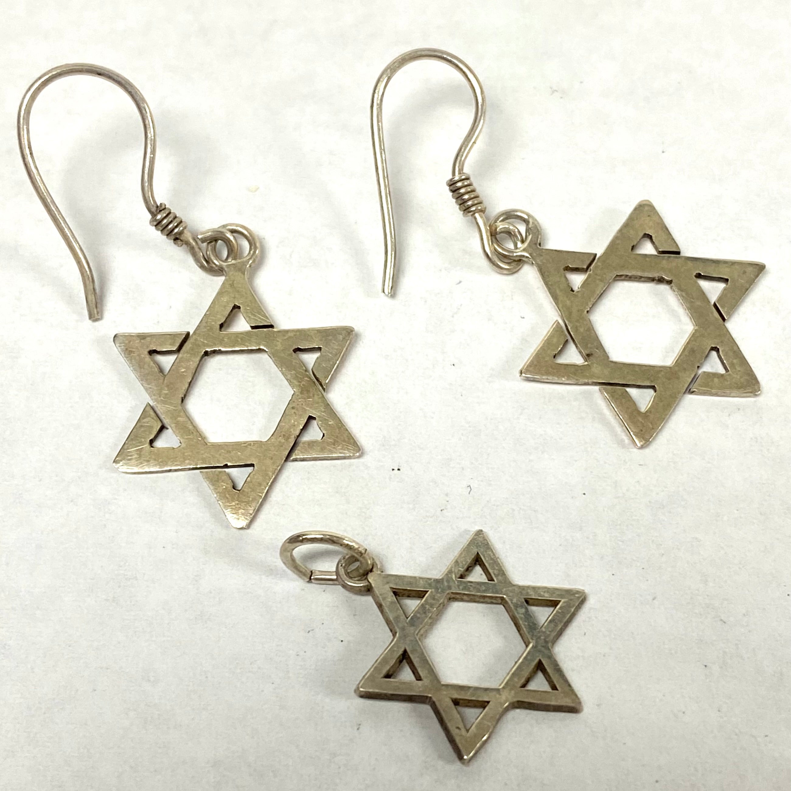 u525 Vintage Sterling Silver Star of David Dangle Earrings and Matching Pendant