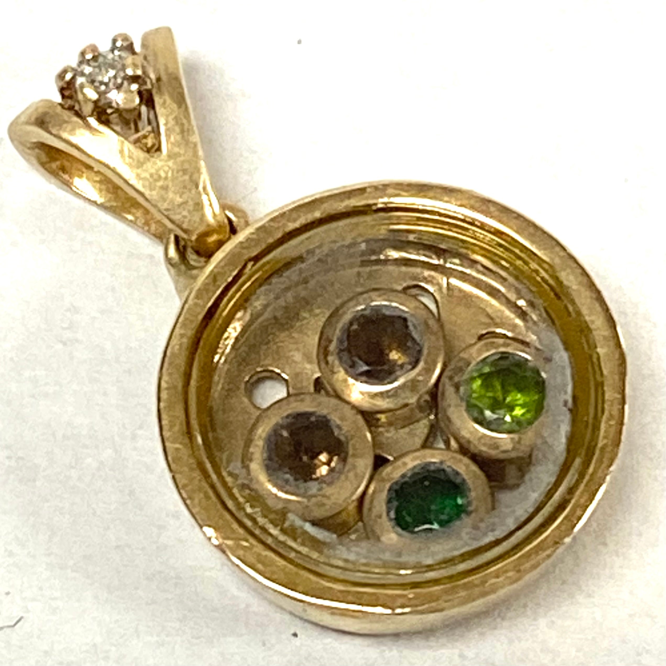 u526 Vintage 10k Yellow Framed Multi-color Gemstone Elegant Pendant Charm