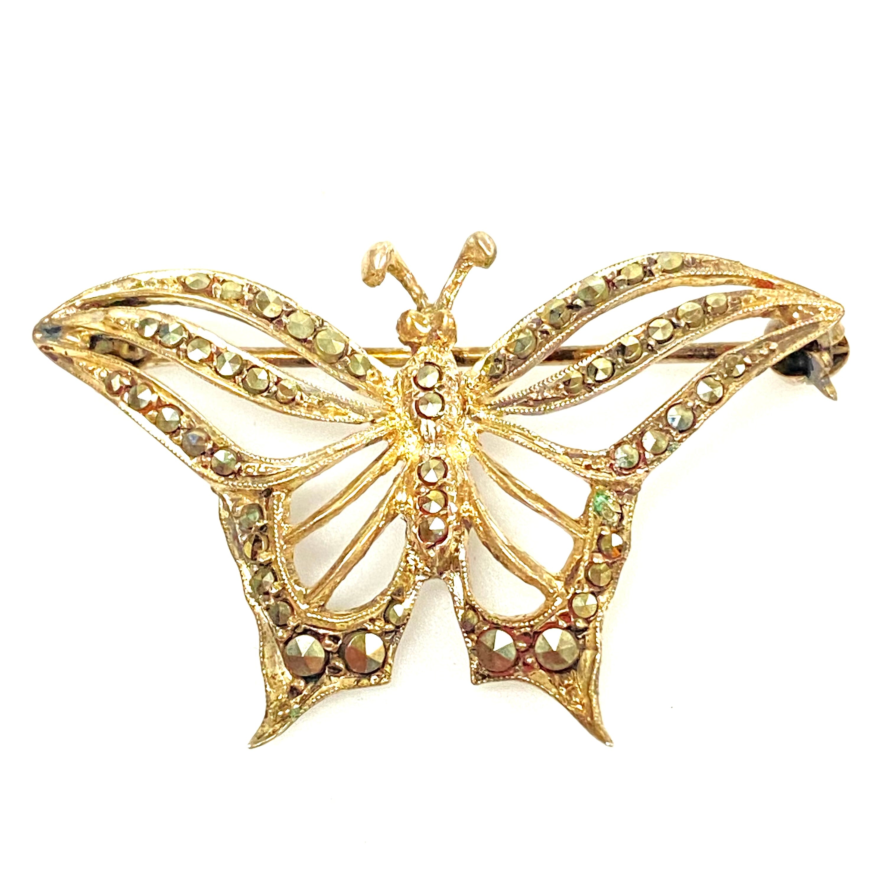 u733 Vintage 800 Sterling Silver Marcasite Stones Butterfly Design Brooch Pin