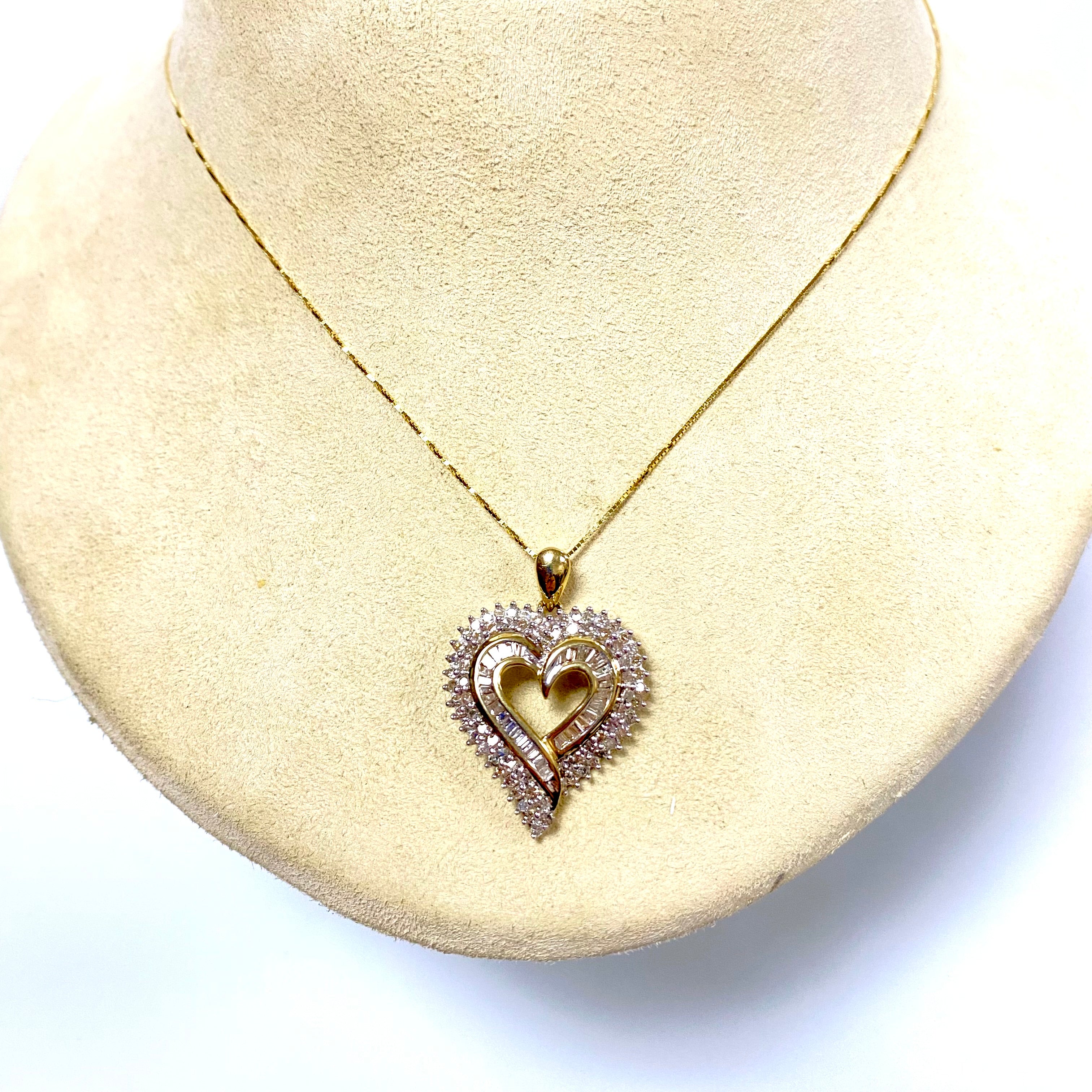 u743 Vintage 10K Yellow Gold 1ct Diamond Heart Pendant Chain Necklace 18" Long
