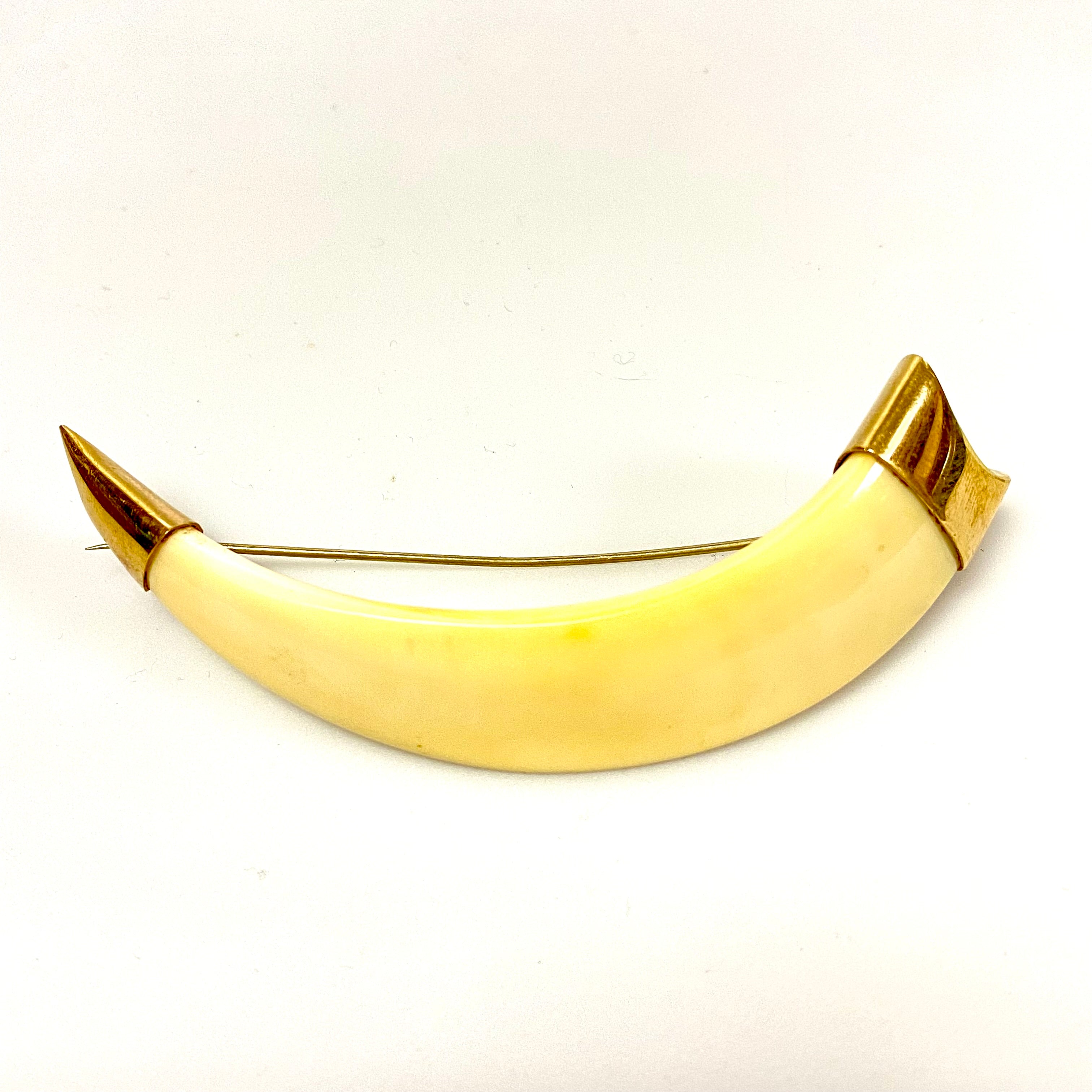 u752 Vintage One of a Kind Tooth Framed in 10K Yellow Gold Brooch Pin