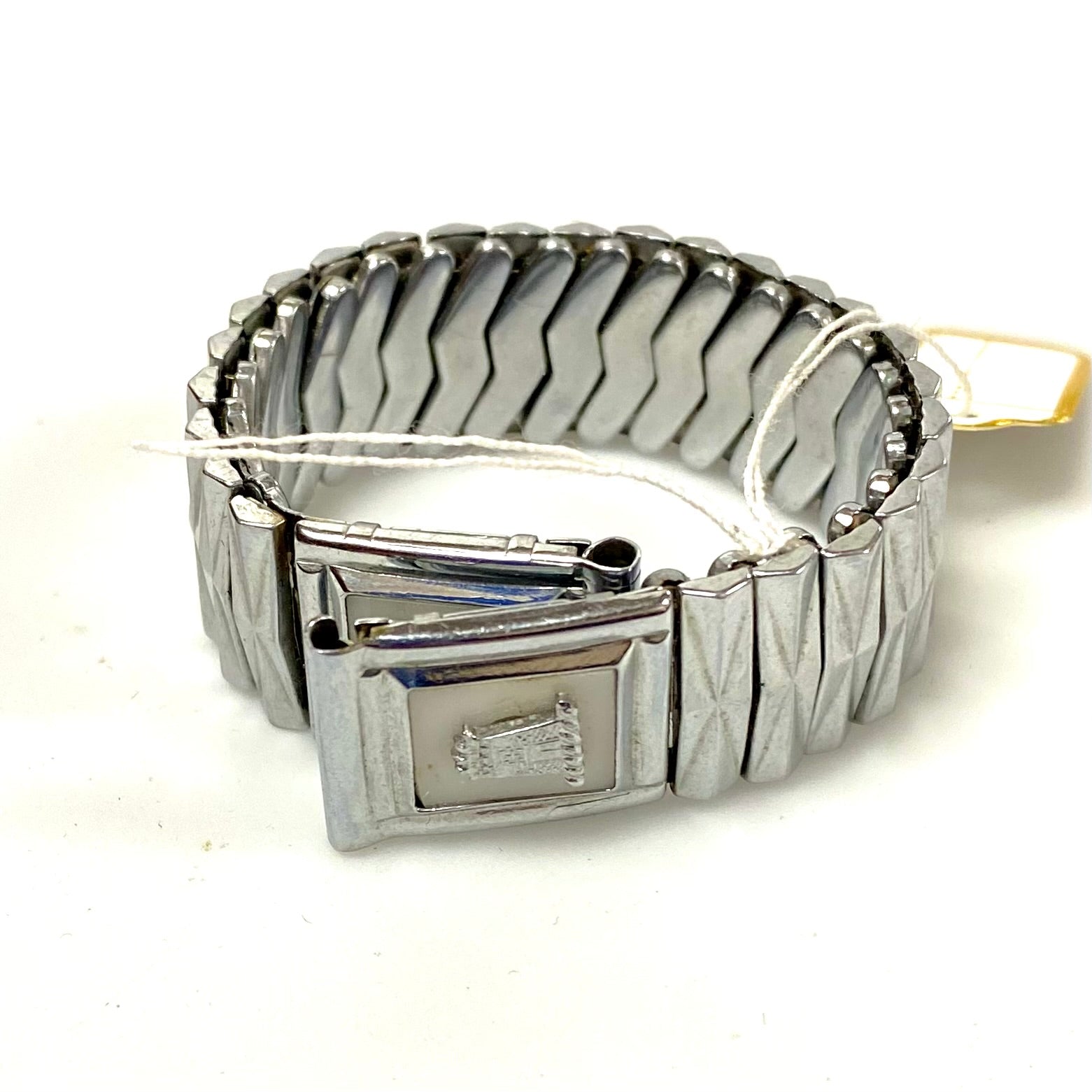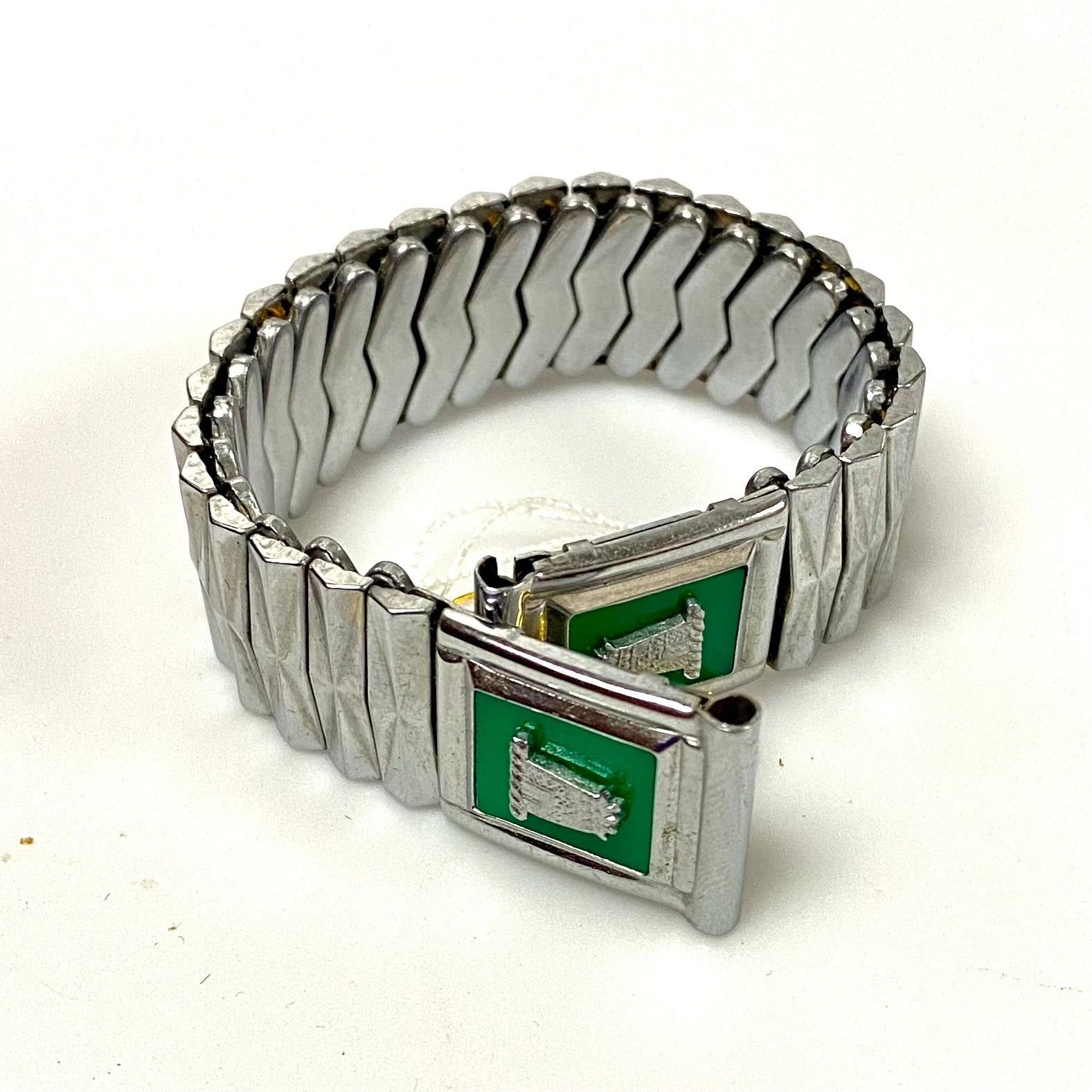 u786 Vintage 1950's Silver Tone 1-Piece Stretch Watch Band Bracelet