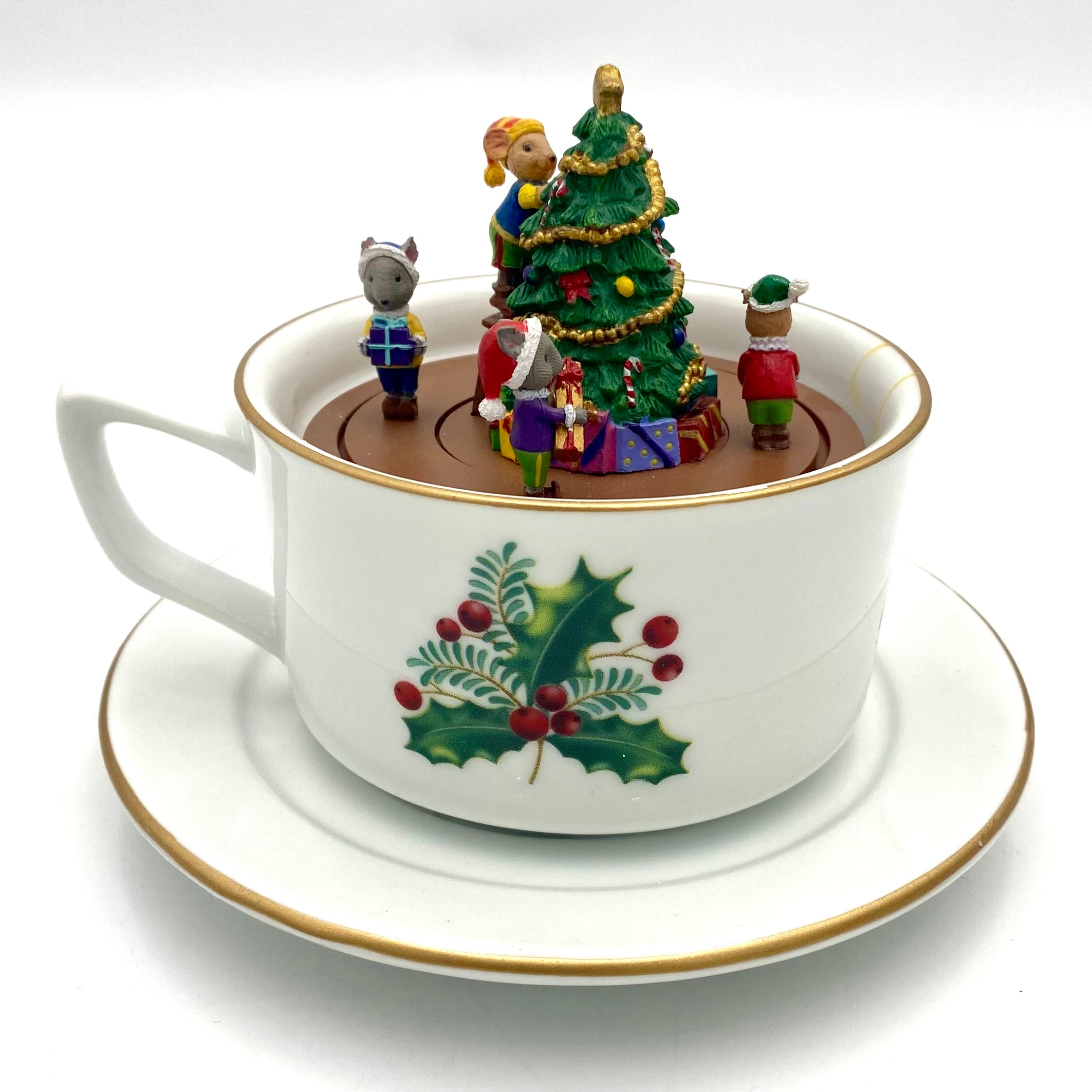 u802 Vintage Mr Christmas Teacup Music Box Animated Jingle Bells Mice Decorating