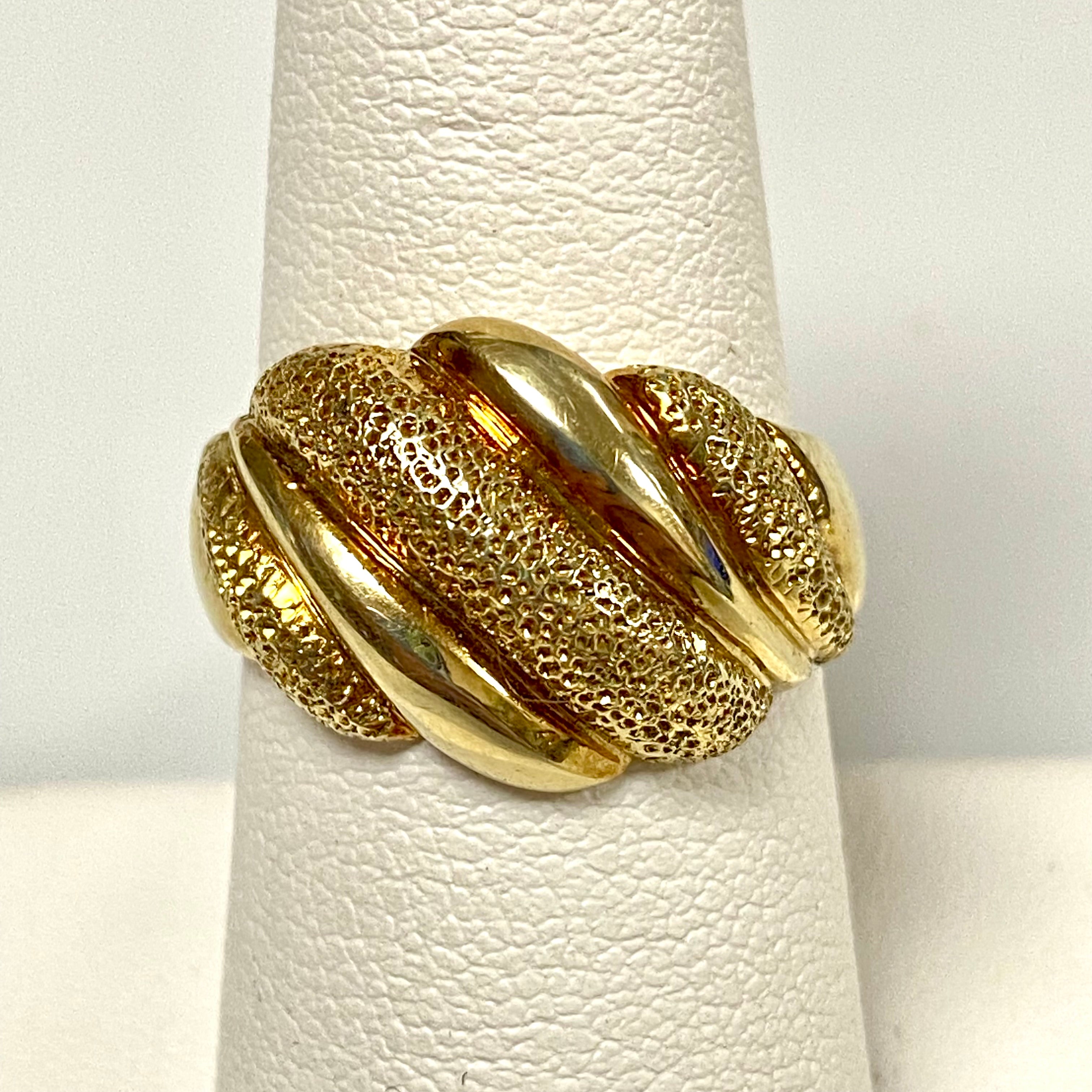 u807 Vintage 14K Yellow Gold Shrimp Style Stone/Smooth Finish Band Ring Size 7.75