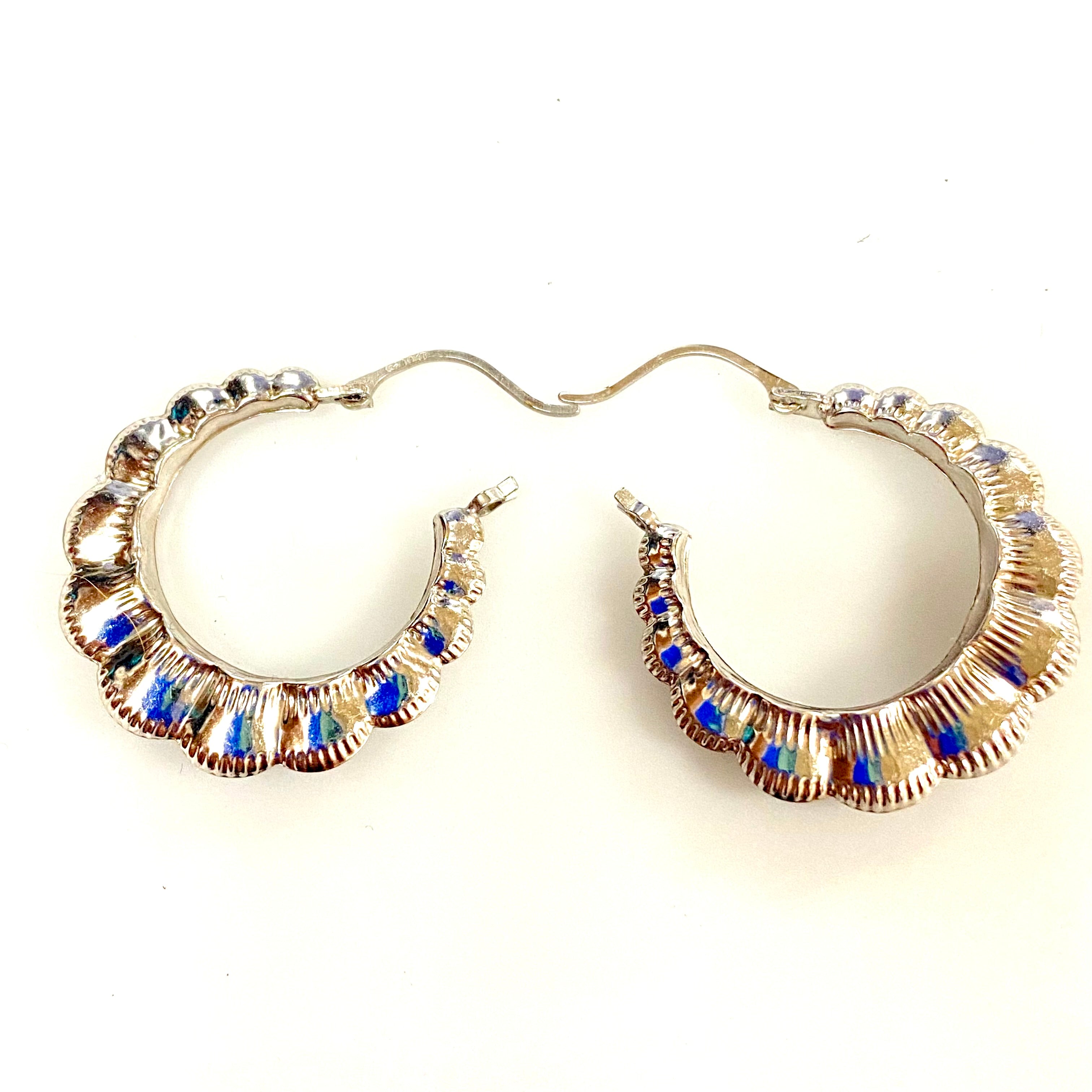 u821 Vintage Classic 10K White Gold Thick Shrimp Hoop Dangle Earring