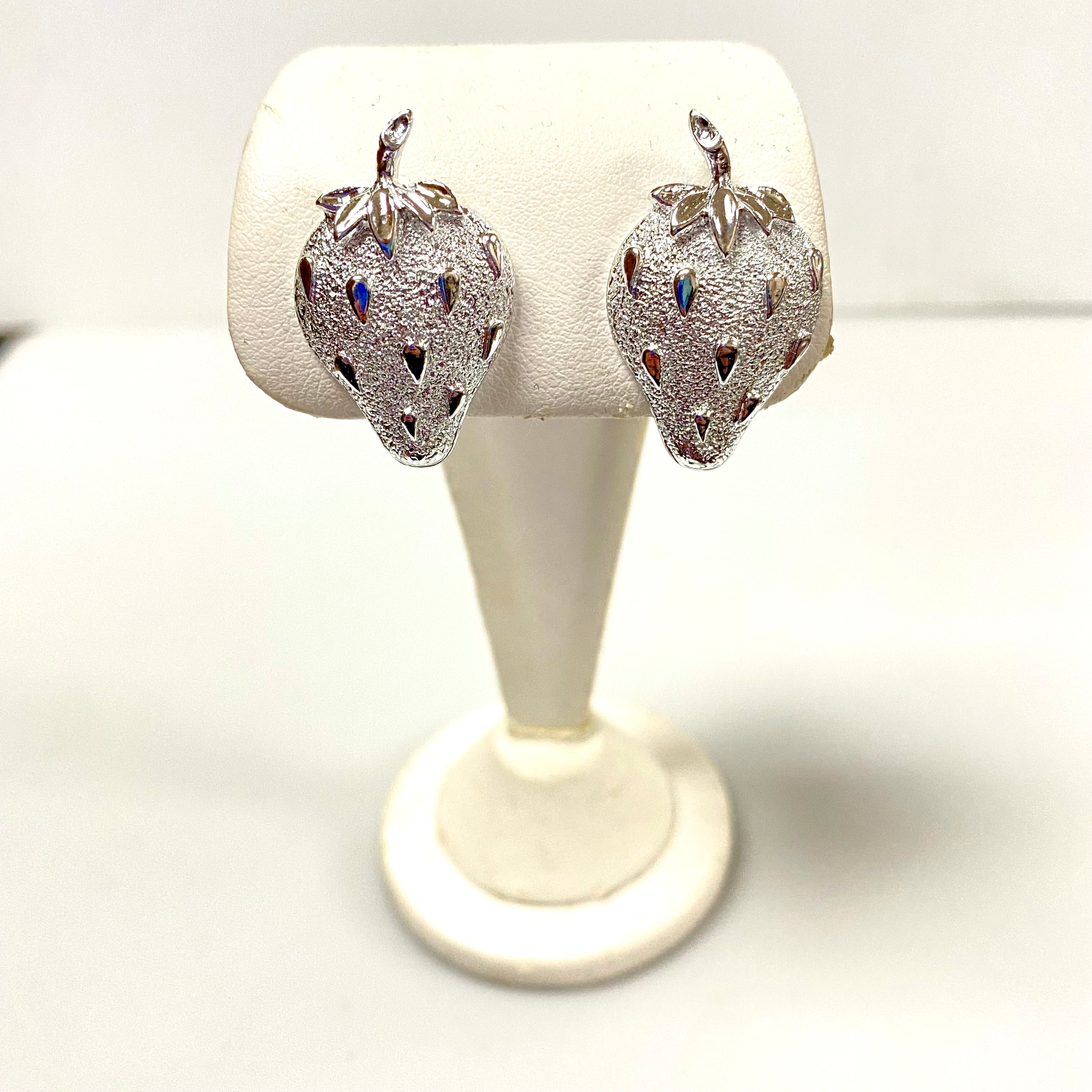 u832 Vintage Weiss 4pc Set Clip Earrings and Matching Brooch Pin Strawberry