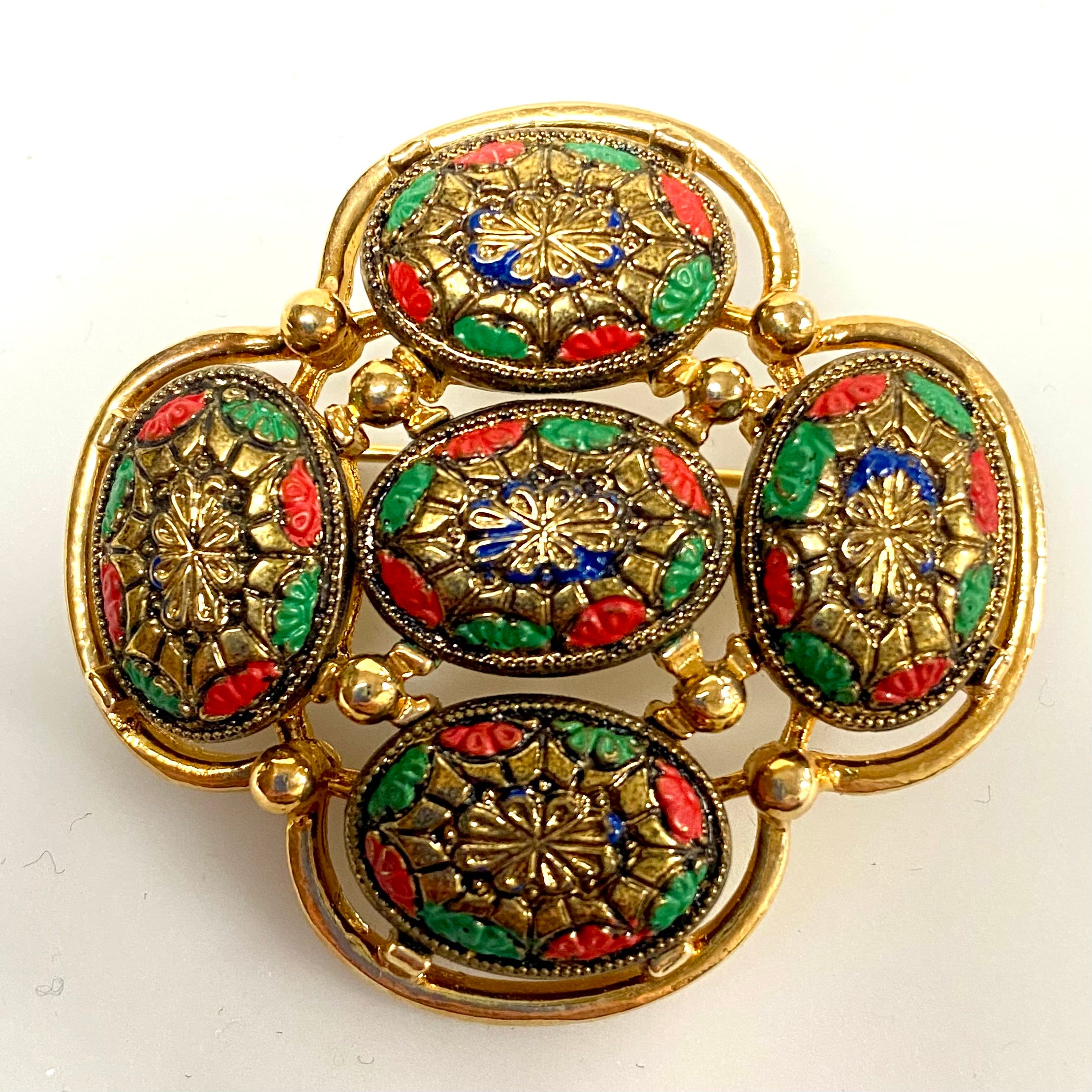 u839 Vintage Sarah Coventry Multi-Color Enamel Light of the East Brooch Pin