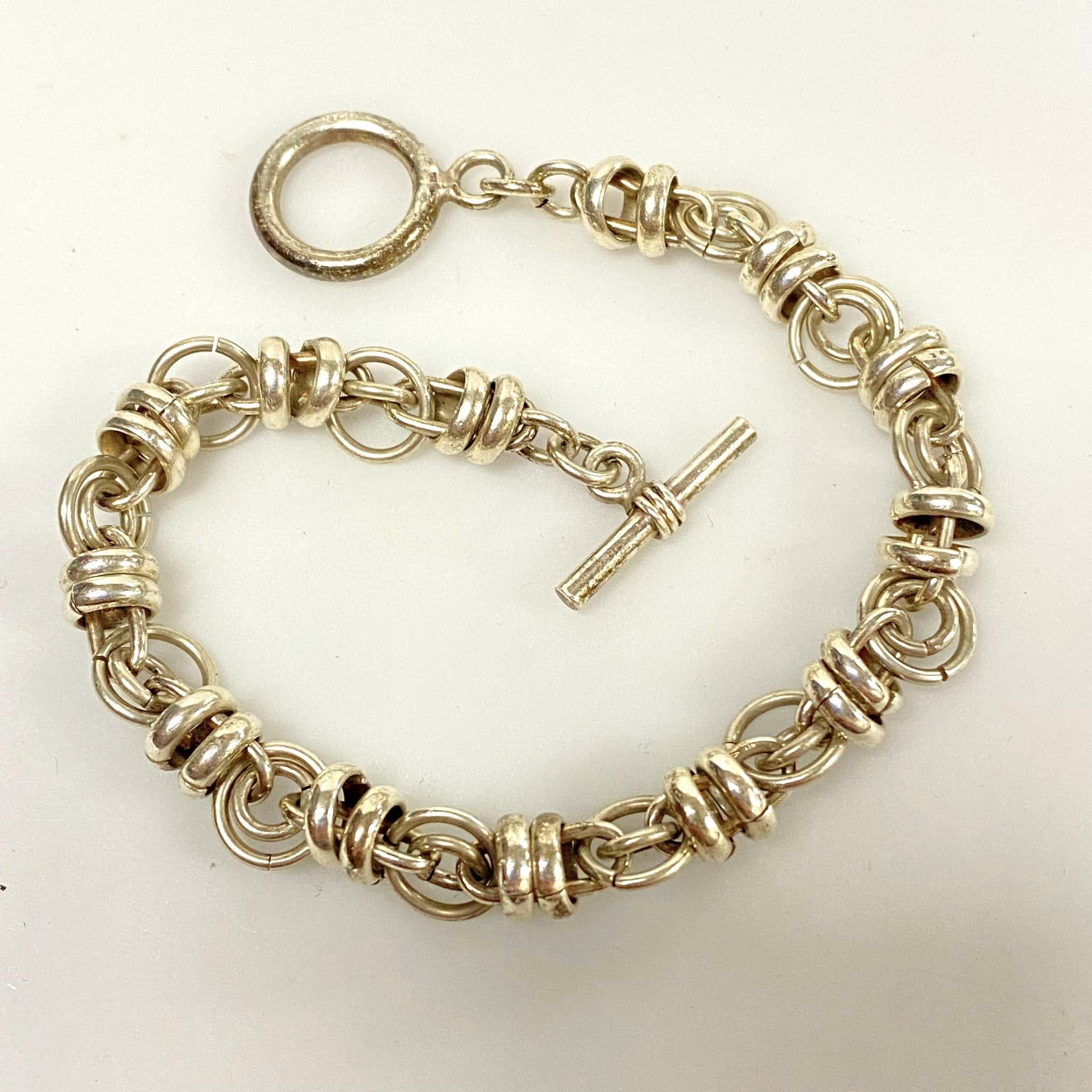 u862 Vintage 925 Sterling Silver Multi Circle Link Chain Toggle Bracelet 8" Long