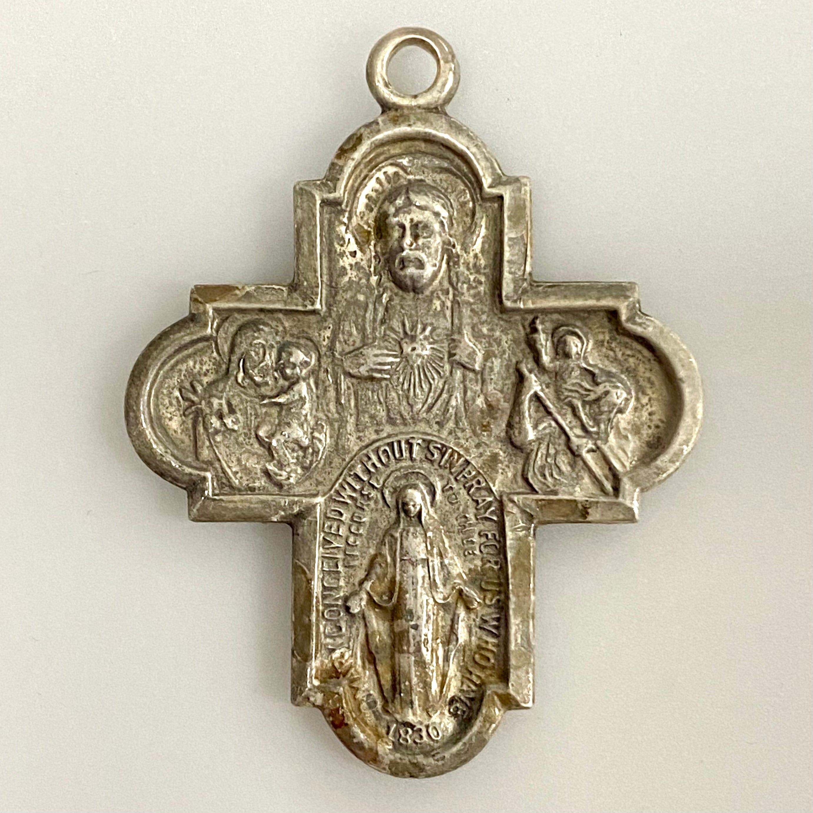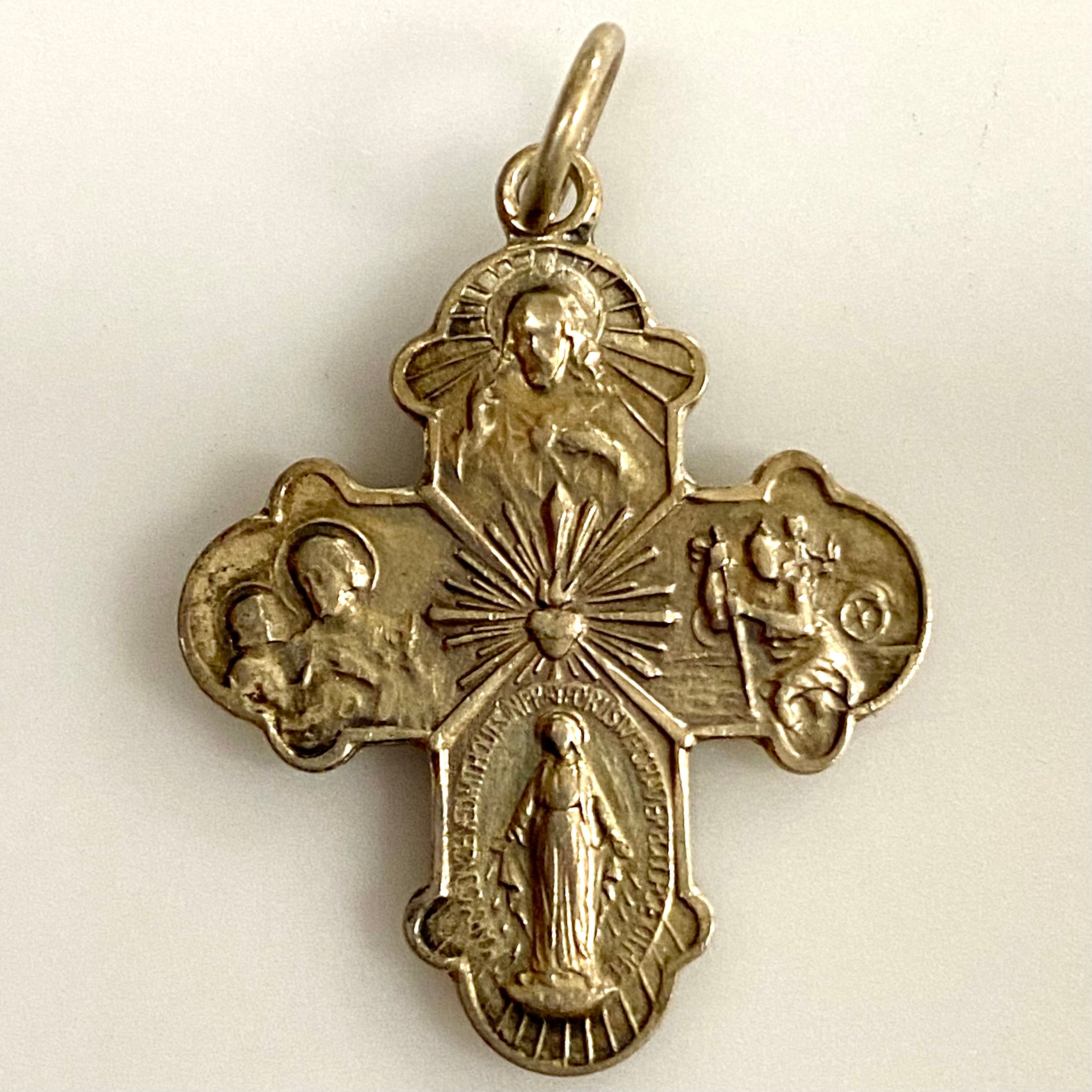 u864 Vintage Sterling Silver Jesus Cross Pendant Catholic Message