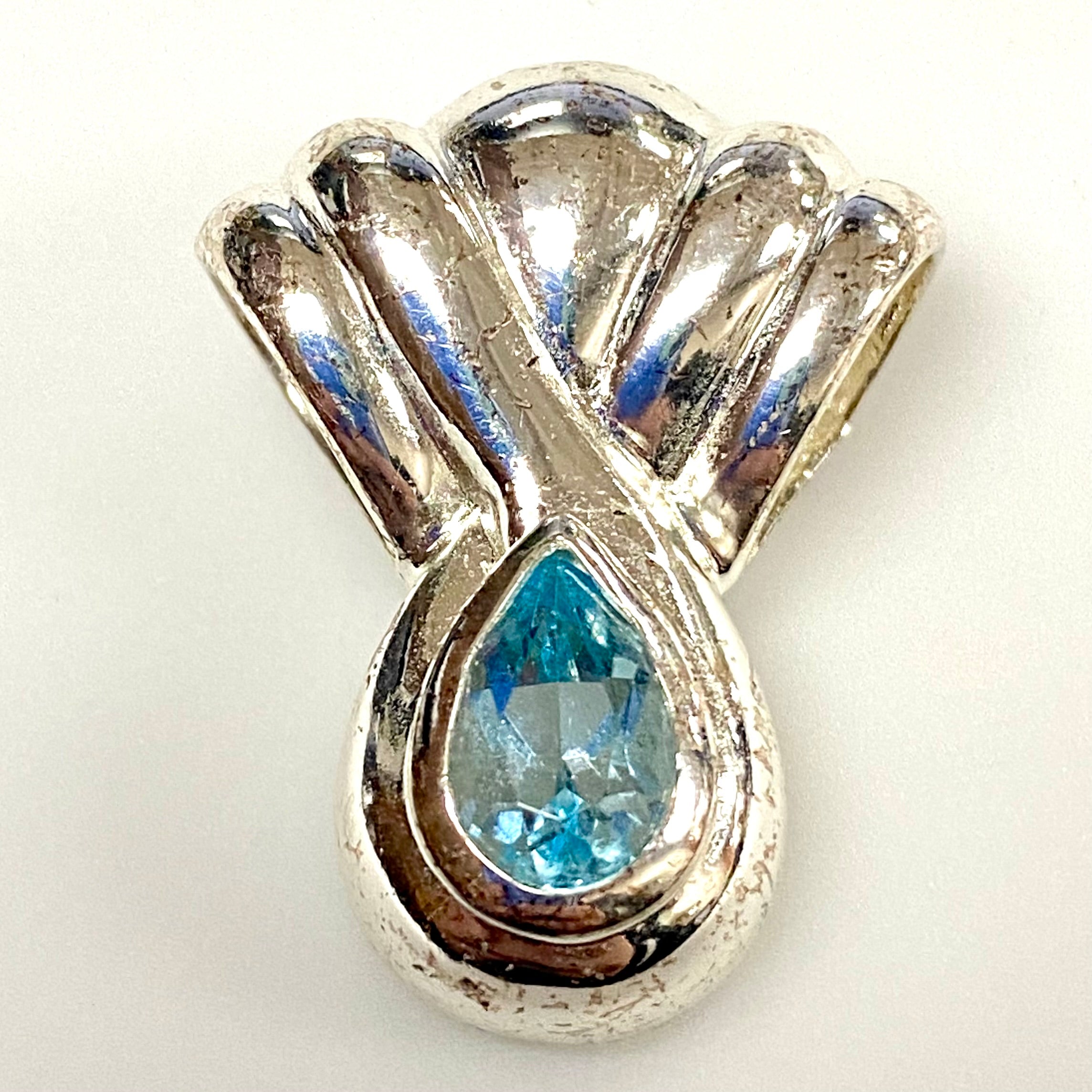 u867 Vintage Sterling Silver Blue Gemstone Elegant Slider Pendant Charm