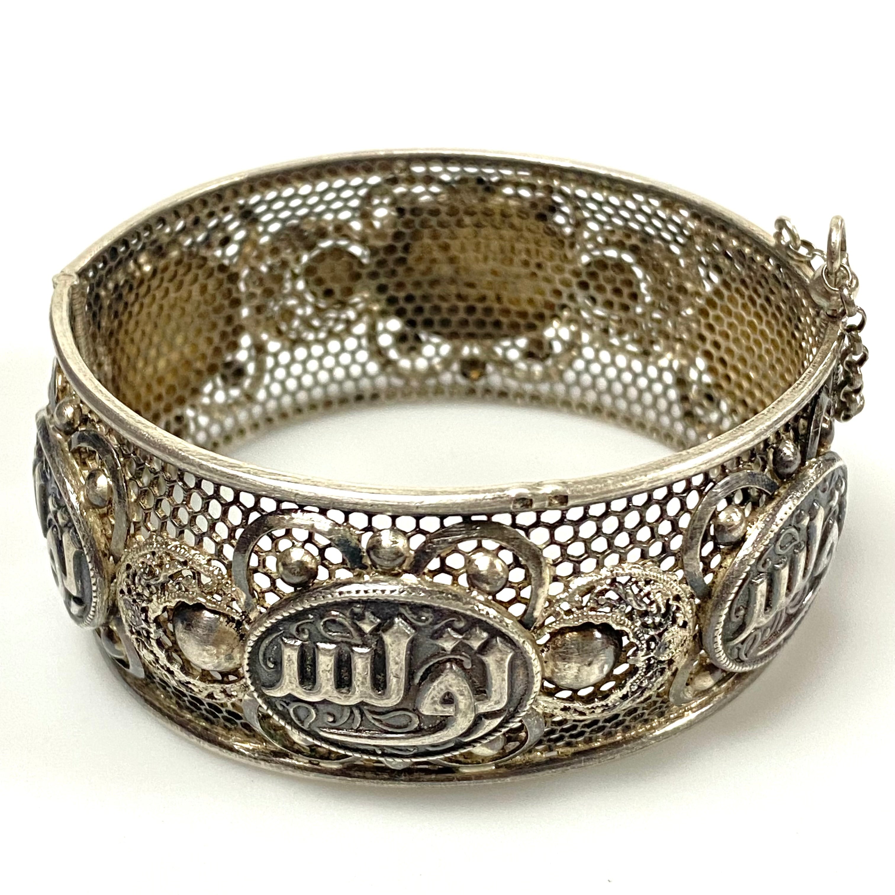 u956 Antique 925 Sterling Silver Ornate Hinged Wide Cuff Bracelet 8" Arabic