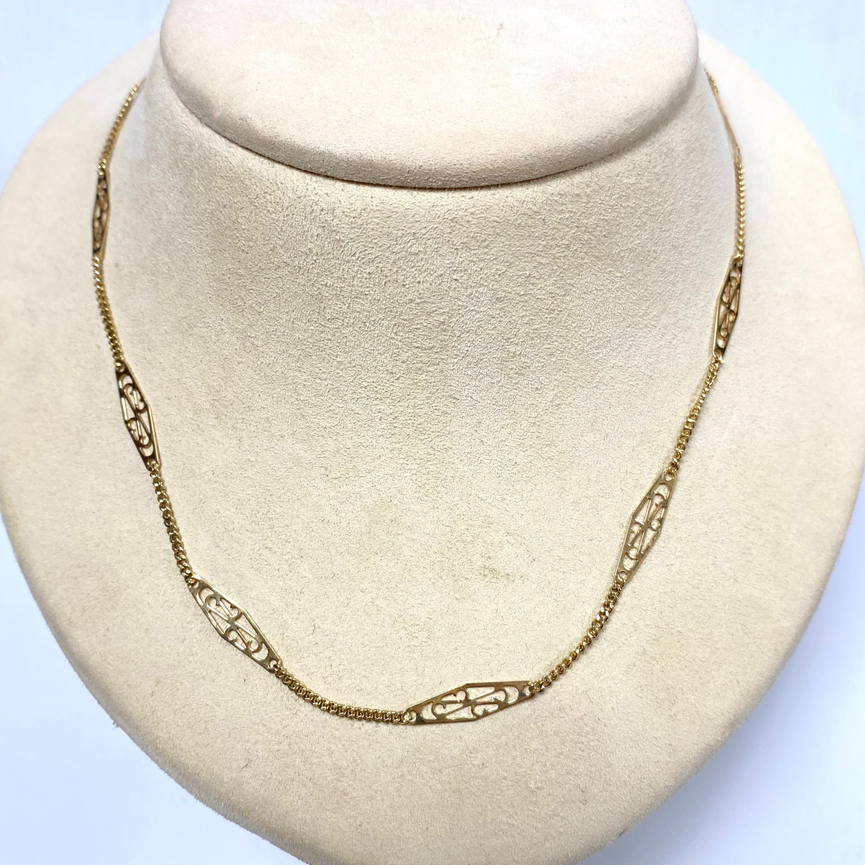 u966 Vintage 14K Yellow Gold Station Style Chain Necklace 24" Long