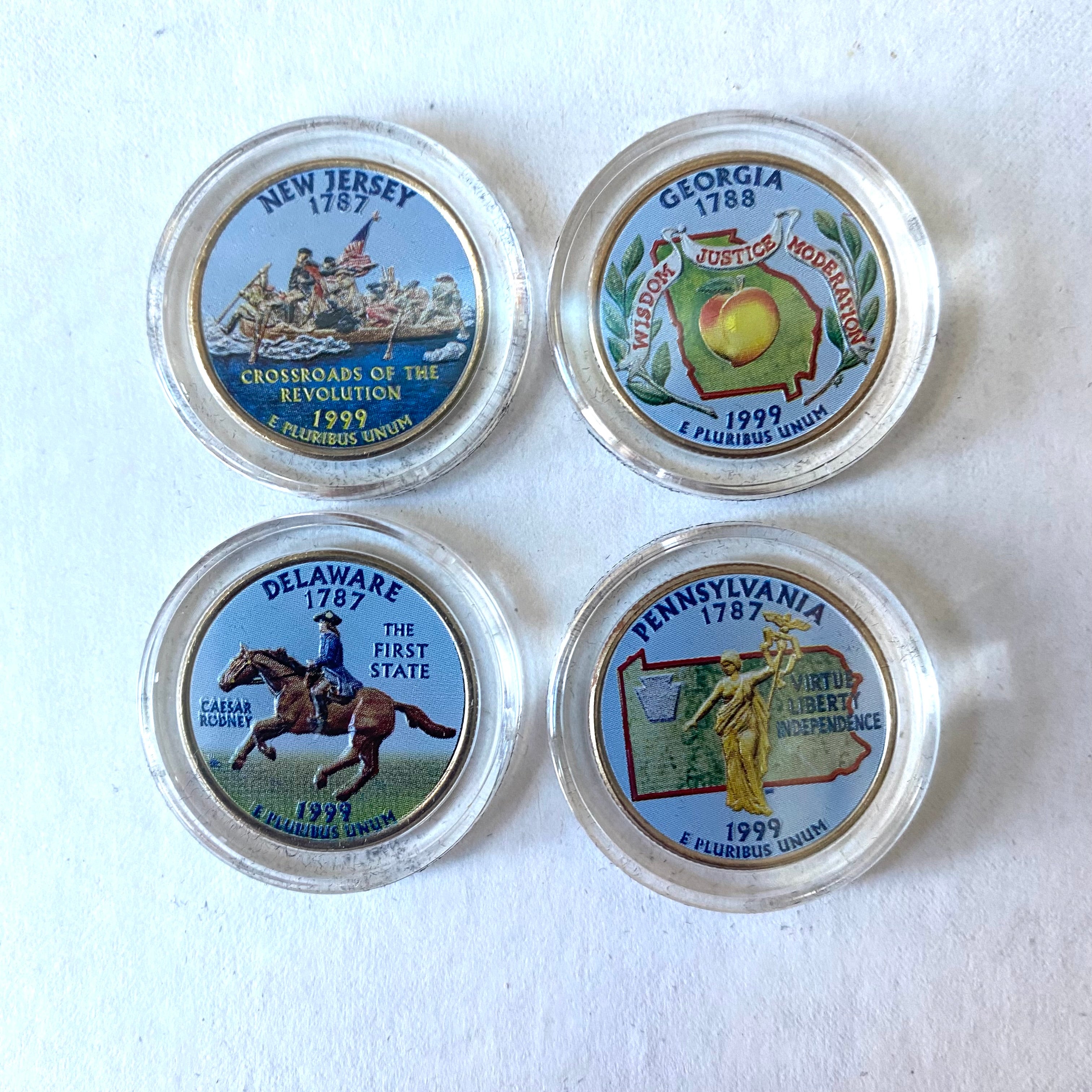 u980 US Statehood Quarters COLORIZED Legal Tender * 4-Coin lot w Clear Capsules