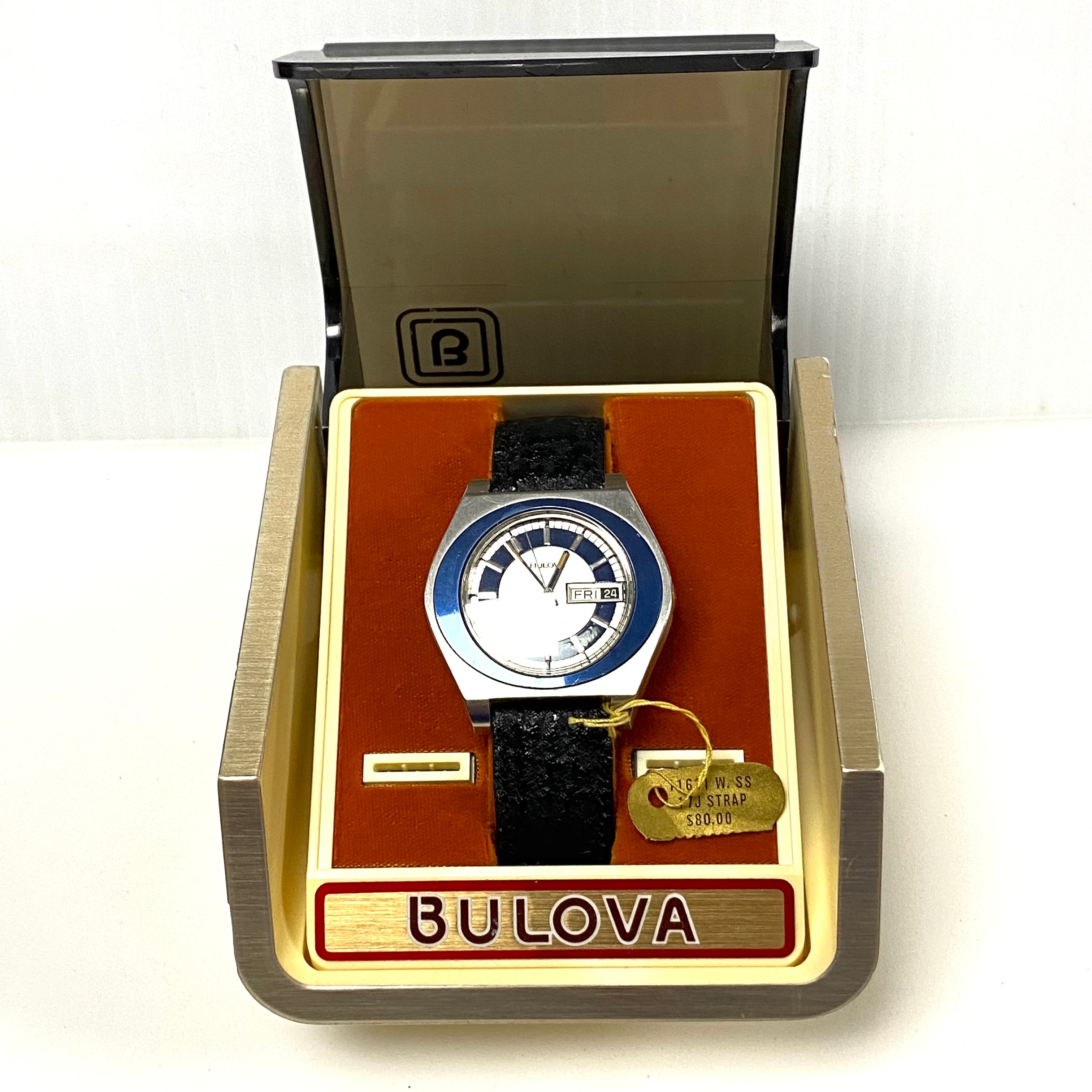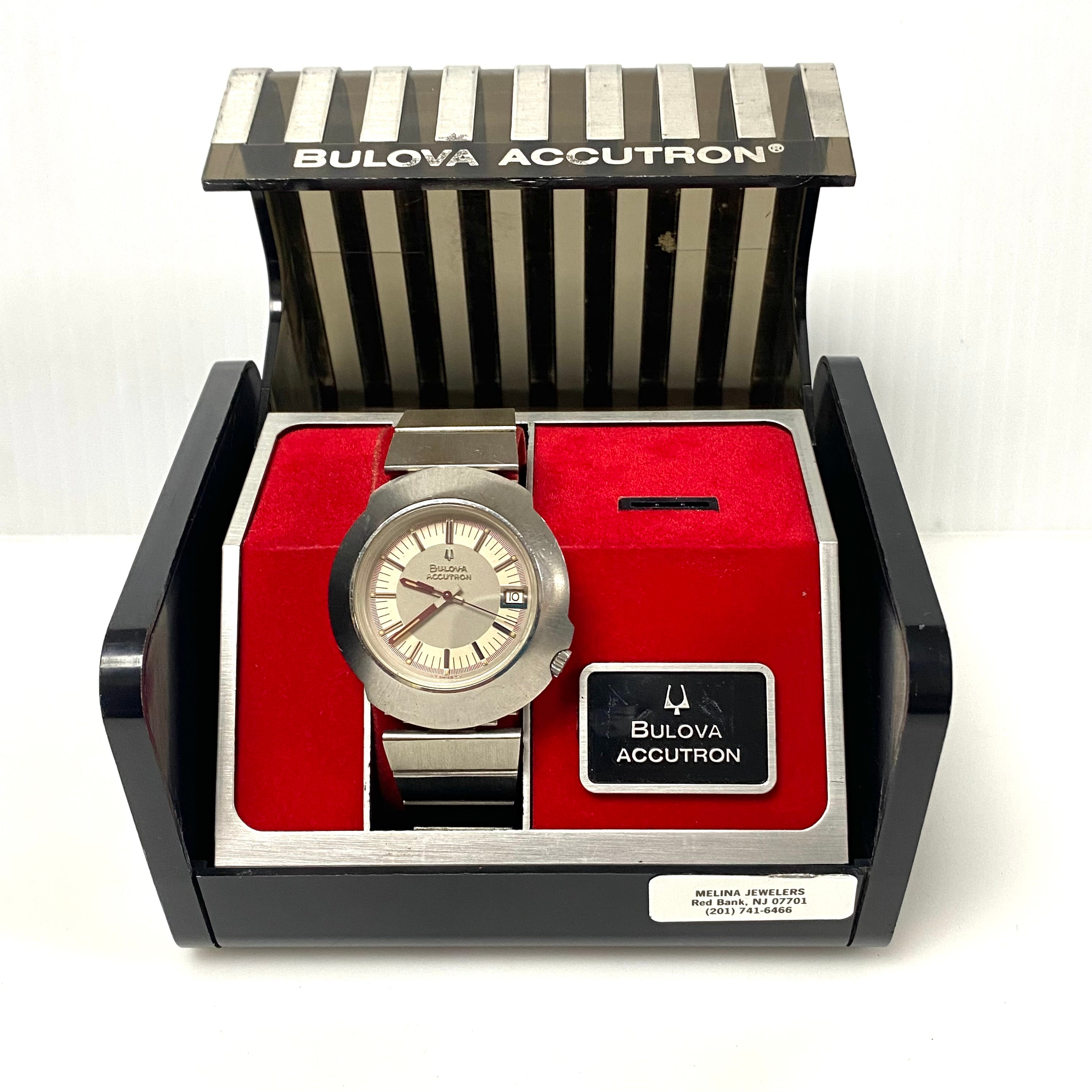 v024 Vintage Bulova Accutron Dura-Crystal Quartz Stainless Steel Water Resistant Wrist Watch +Box