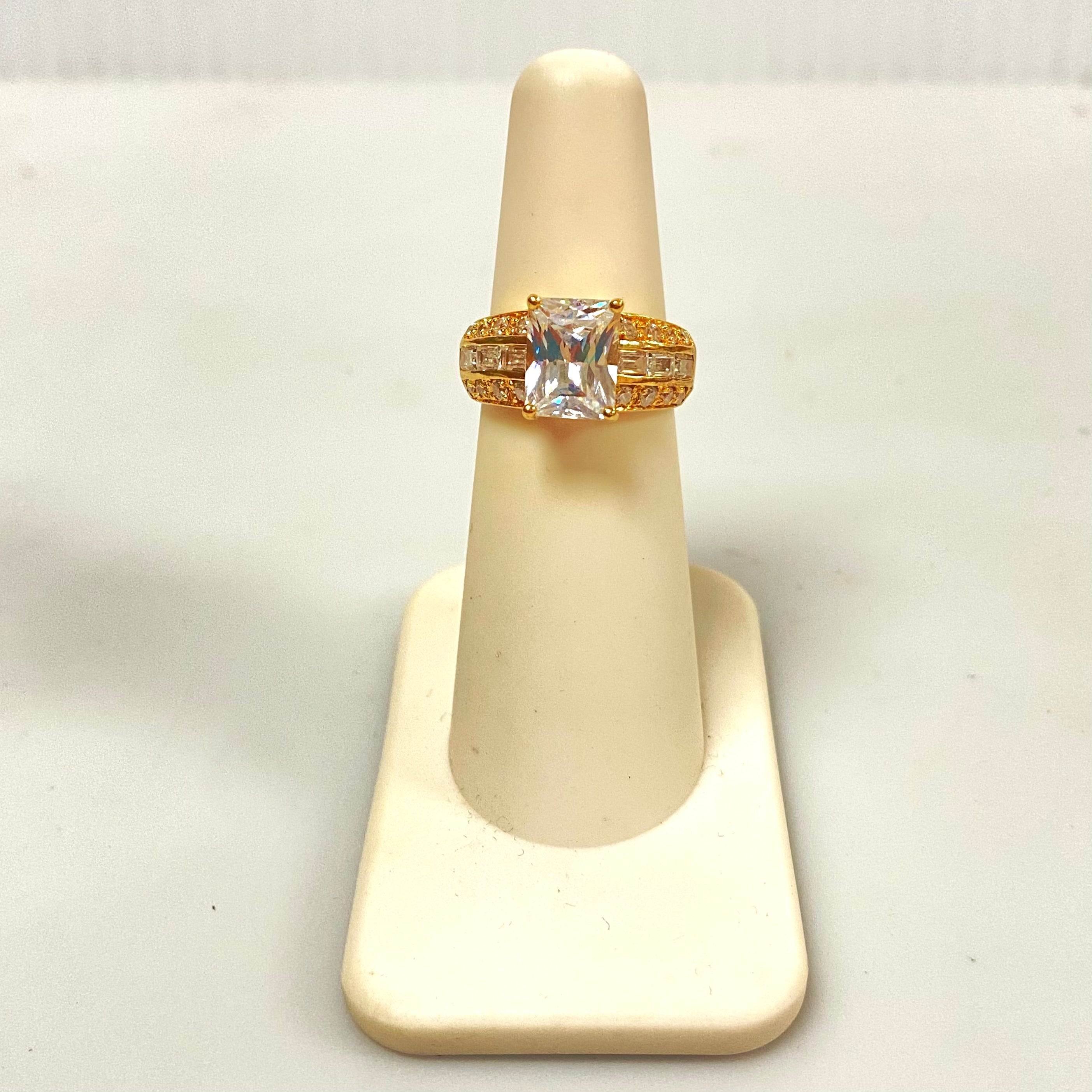 v094 Vintage 14K Yellow Gold Cubic Zirconia Stone Band Ring Size 5