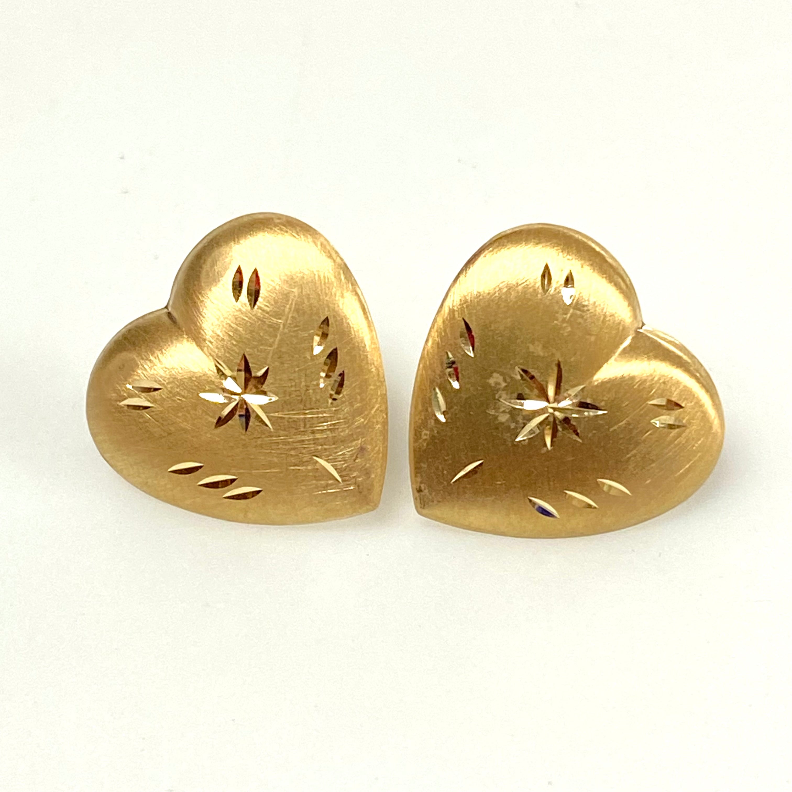 v112 Vintage 14K Yellow Gold Heart Shaped Earrings Pierced