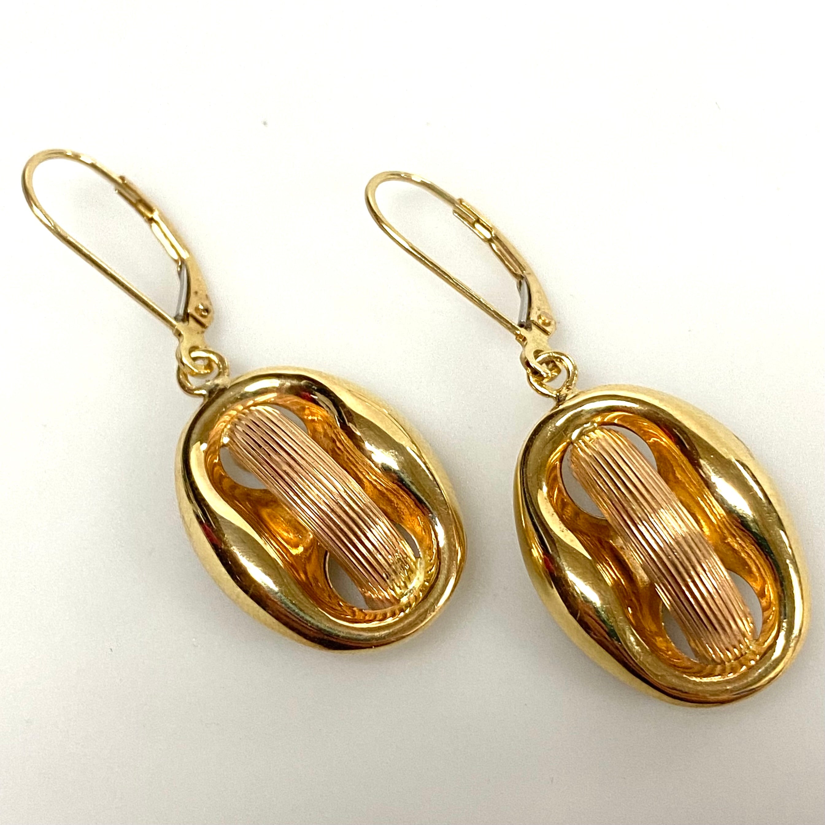 v113 Vintage 14K Yellow Gold Anchor Link Earrings Pierced Dangling Style
