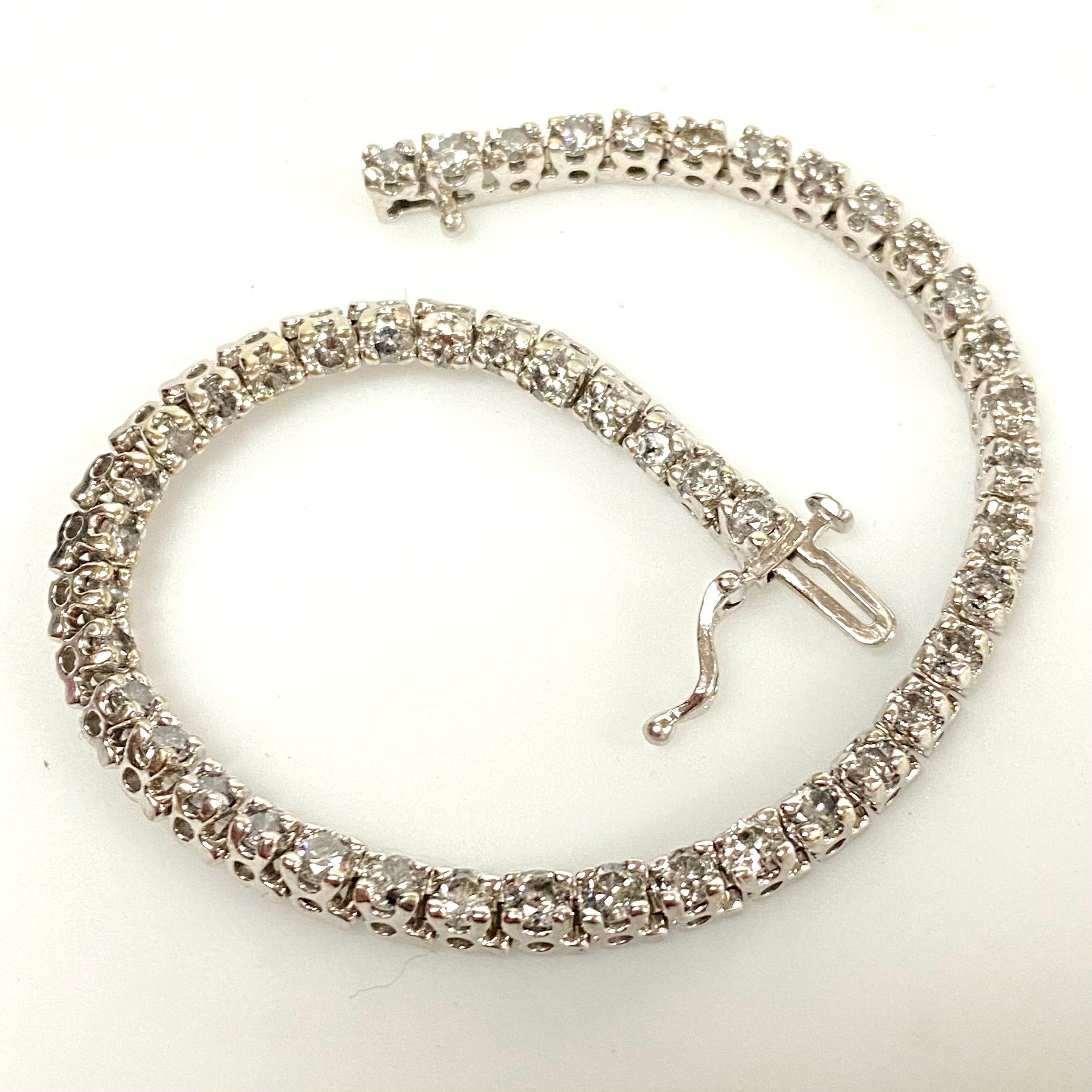 v117 Vintage 14K White Gold 5.17ct Diamond Tennis Style 3mm Bracelet 7" long