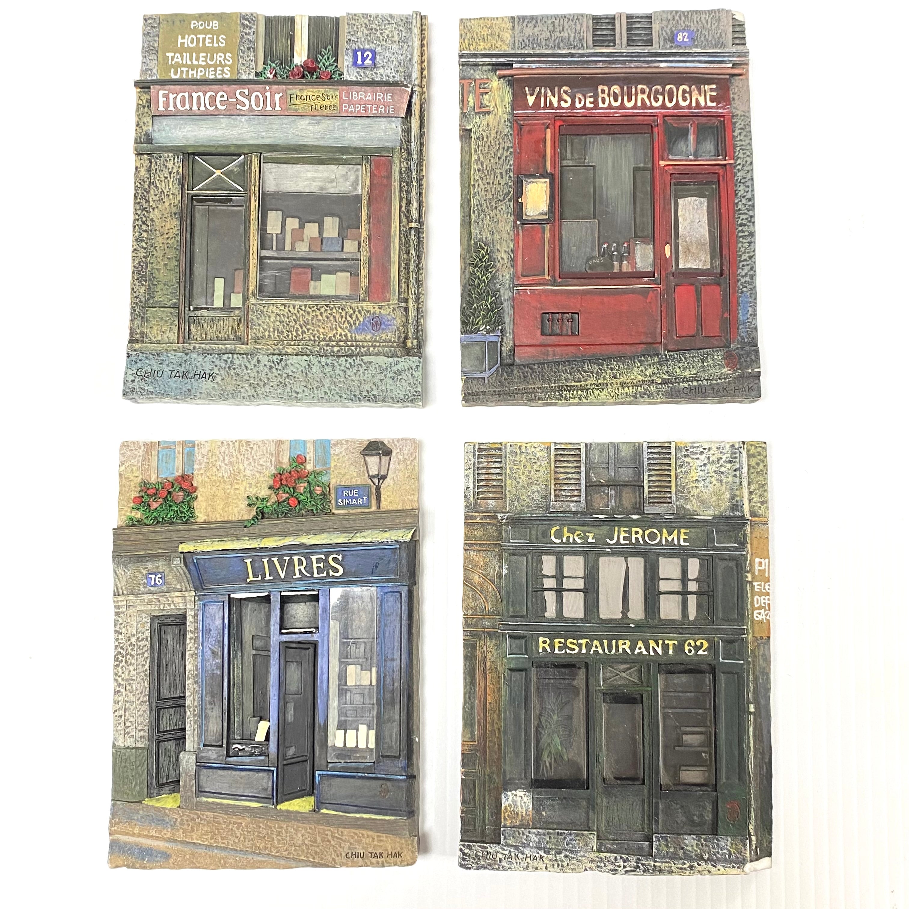 v121 Chiu Tak Hak French Paris Store Fronts Set of 4 Resin Art Wall Plaques Vintage