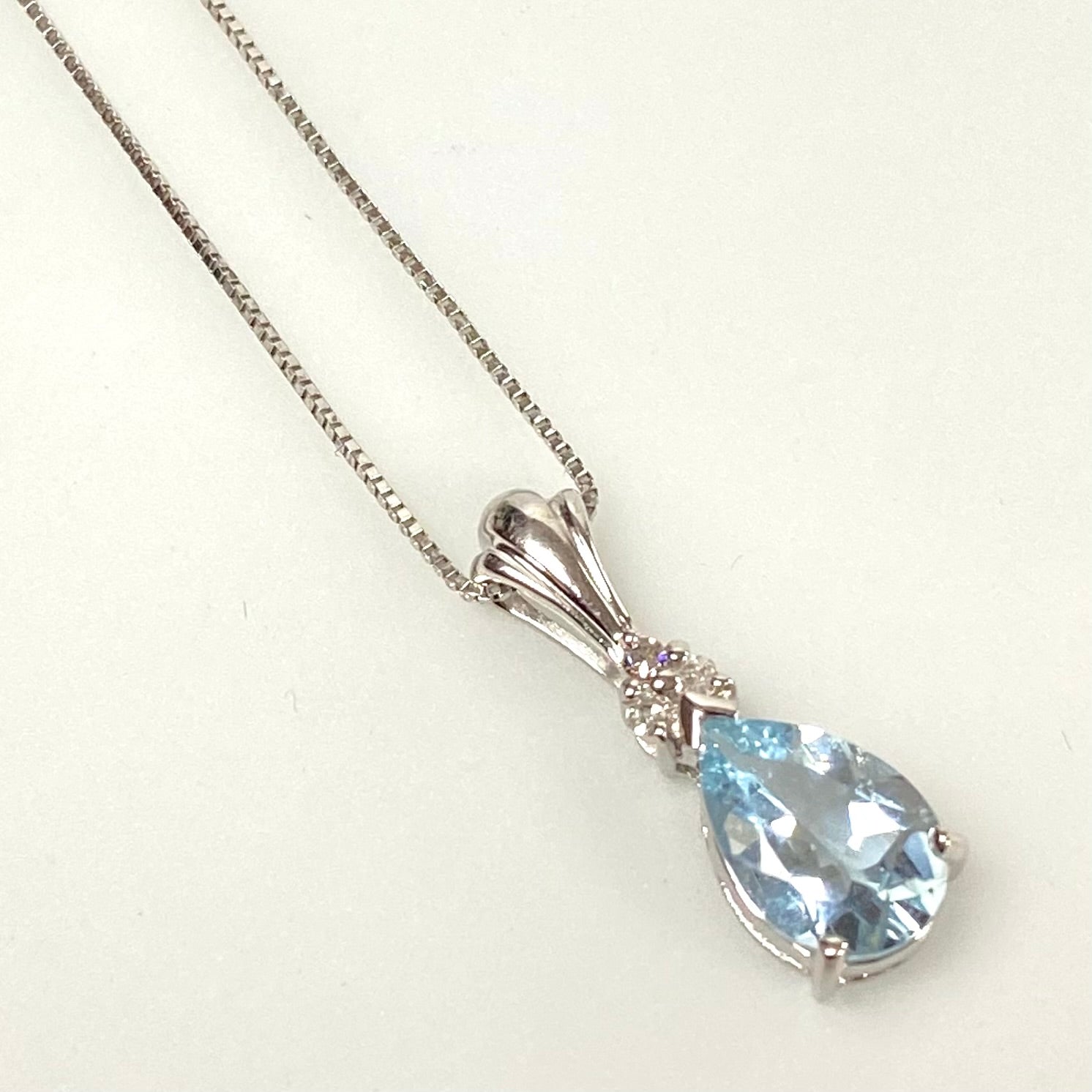 v128 Vintage 10K White Gold Chain Necklace 18" Long Aquamarine Diamond Pendant