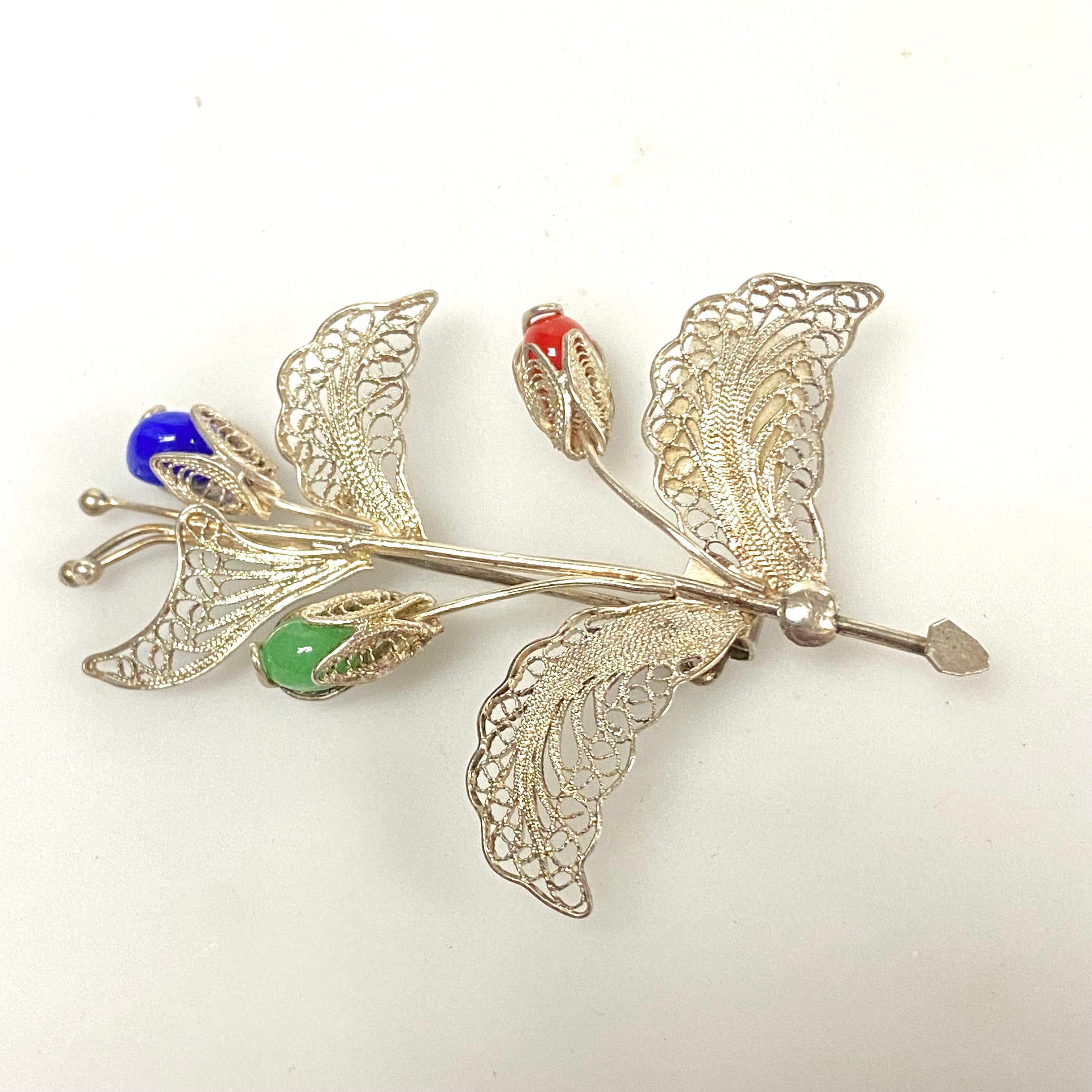 v159 Vintage Sterling Silver Filigree Floral Brooch Pin