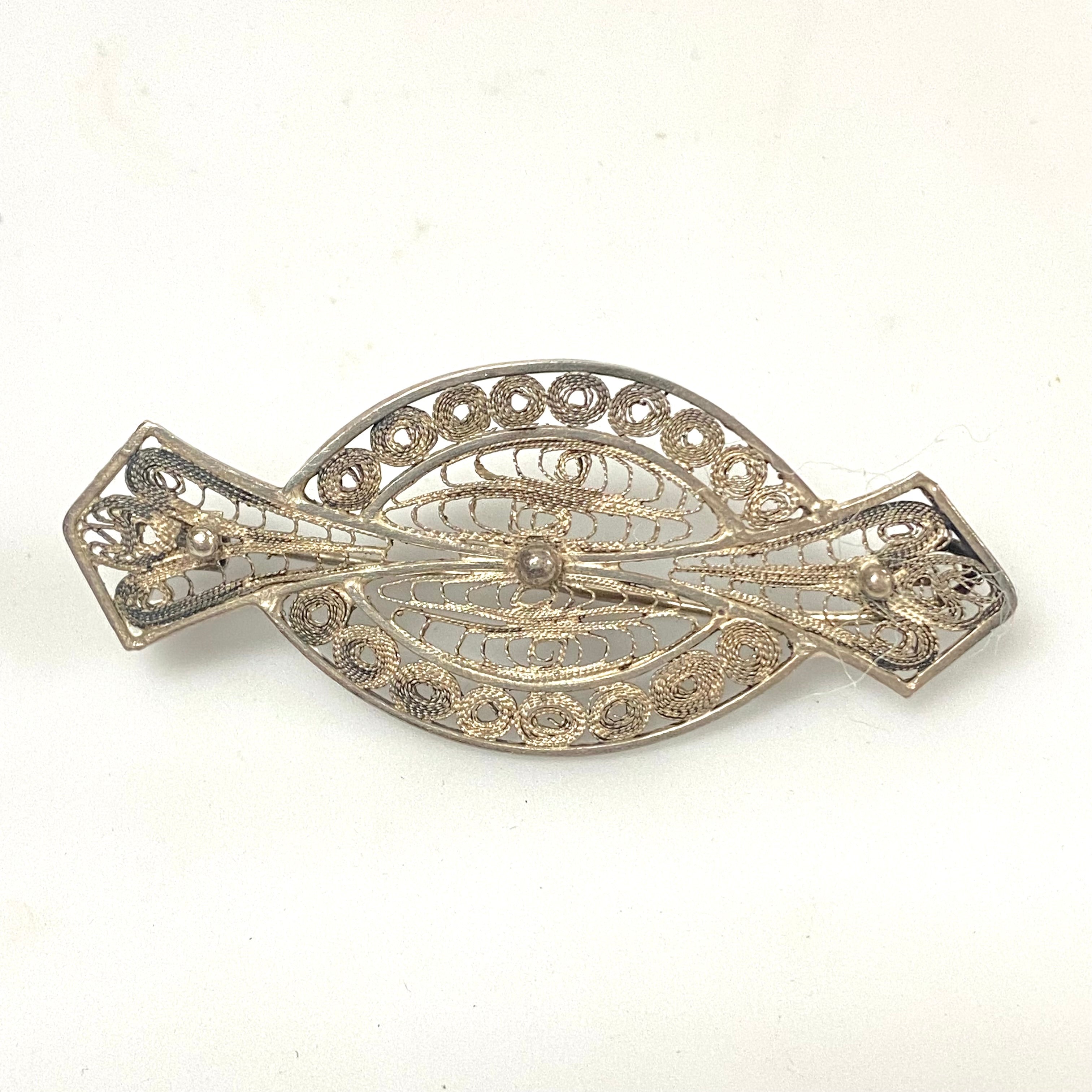 v161 Vintage Sterling Silver Silver Tone Filigree Brooch Pin