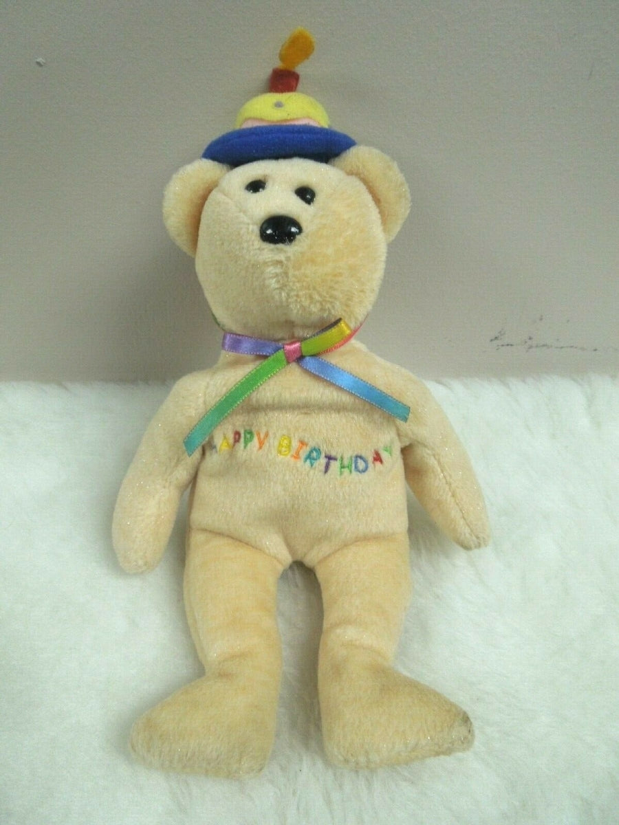 q848 Ty 2010 Beanie Babies Celebration Bear “Happy Birthday” Plush Stuffed Animal Toy