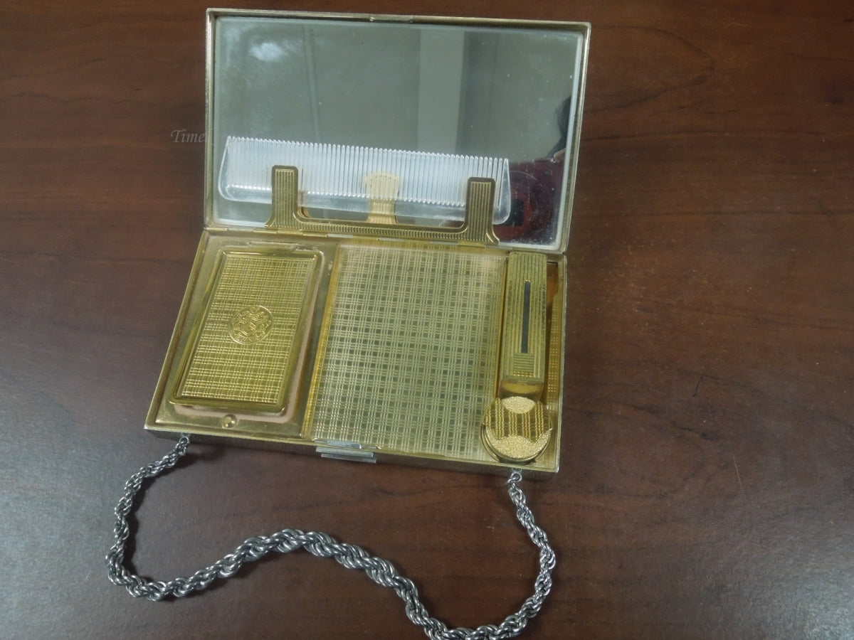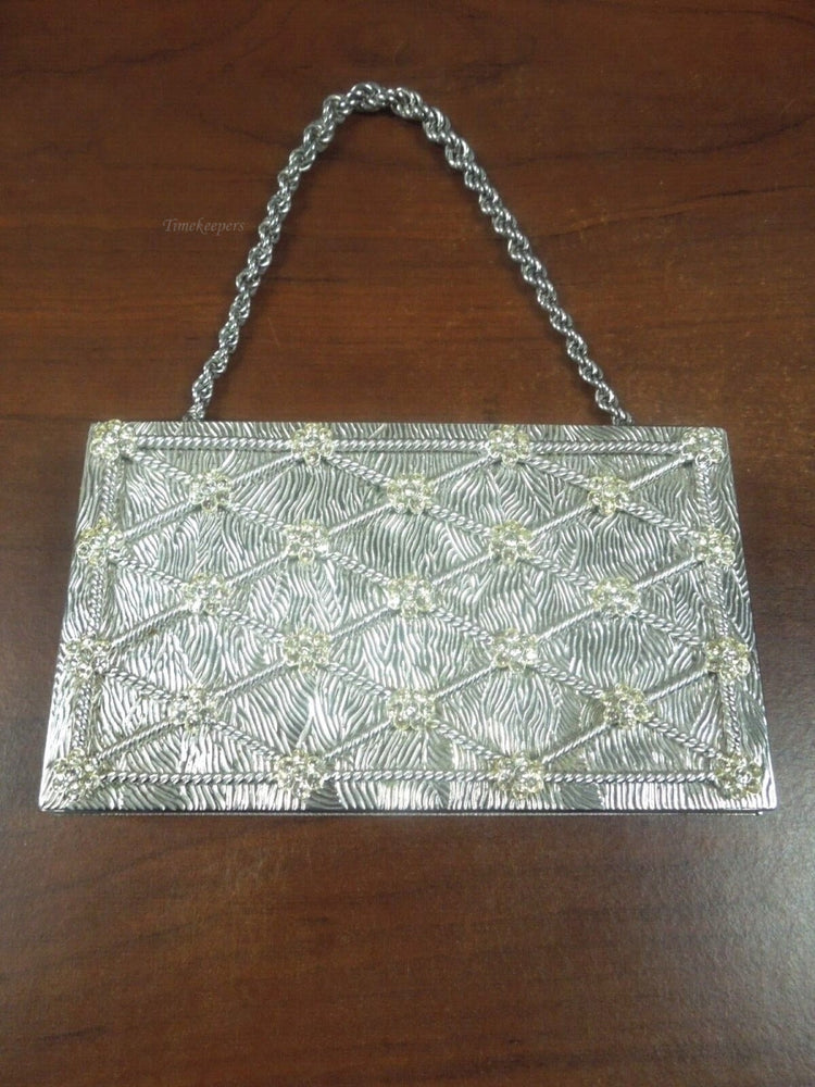For Sale: (1) r785 Vintage 1940’s EVANS Rhinestone Encrusted Flower Silvertone Wristlet Compact Case
