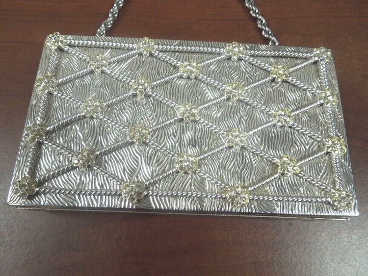 Stunning Vintage 1940’s EVANS Rhinestone Encrusted Flower Silvertone Wristlet Compact Case Purse