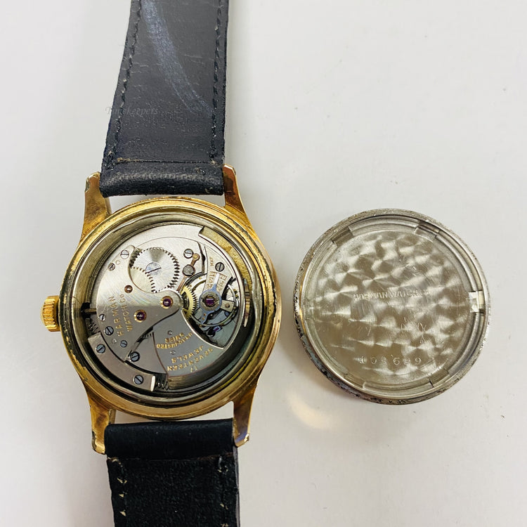 Pre-owned vintage item. Please see pictures for details. Some discoloration. Sold as is, as seen on pictures, no returns on vintage/antique items. We do not alter/polish antique items (unless requested by buyer) and try to keep items as original as possible. Watch was serviced and working well.