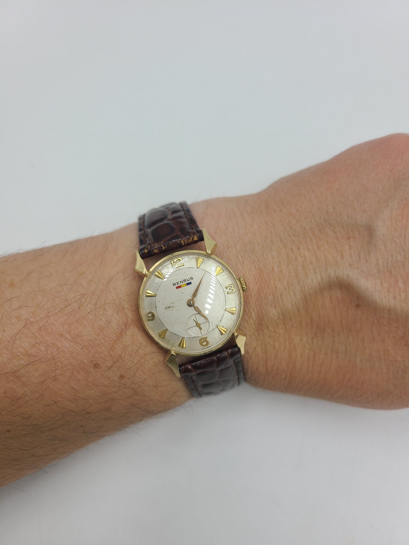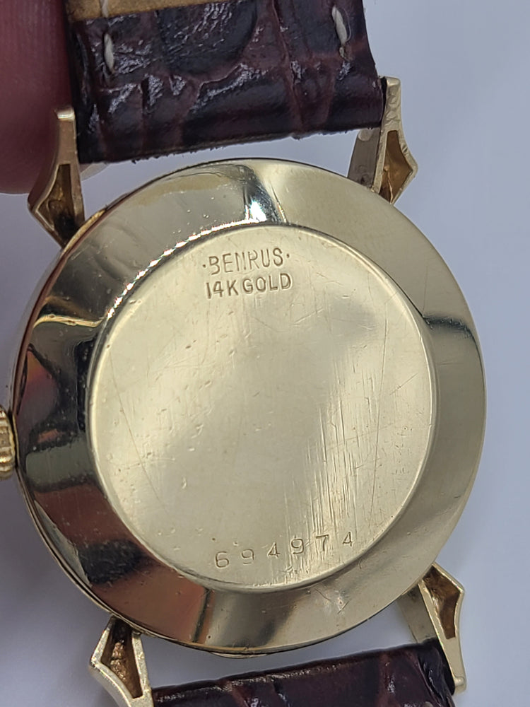 For Sale: (1) k742 Men's Vintage Mechanical 14kt Yellow Gold Benrus Wristwatch