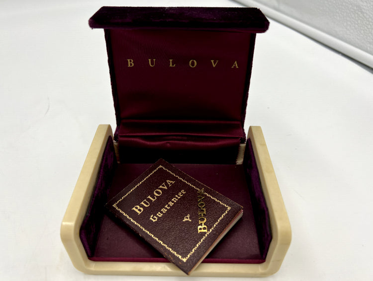 This is a Bulova 10k gold filled wrist watch. Comes with box and Bulova guarantee pamphlet.
