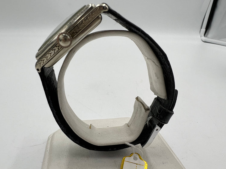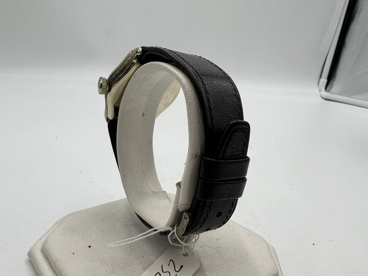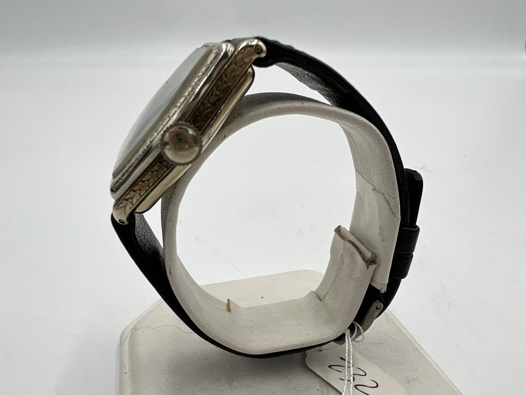 This Illinois wristwatch from the 1920s is a true gem for collectors and enthusiasts alike. Its mechanical manual wind movement ensures accurate timekeeping, while the stylish silver dial and leather band make it a perfect accessory for any formal occasion. Whether you're looking to add to your watch collection or simply want a unique piece of history, this Illinois Mate wristwatch is sure to impress.