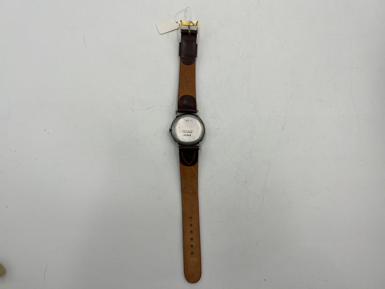 Dial diameter is 32mm. The band is leather with a width of 18mm. It weighs 32.4 grams. It is a manual wind movement. No apparent scratches or chips in the crystal but is in used condition.