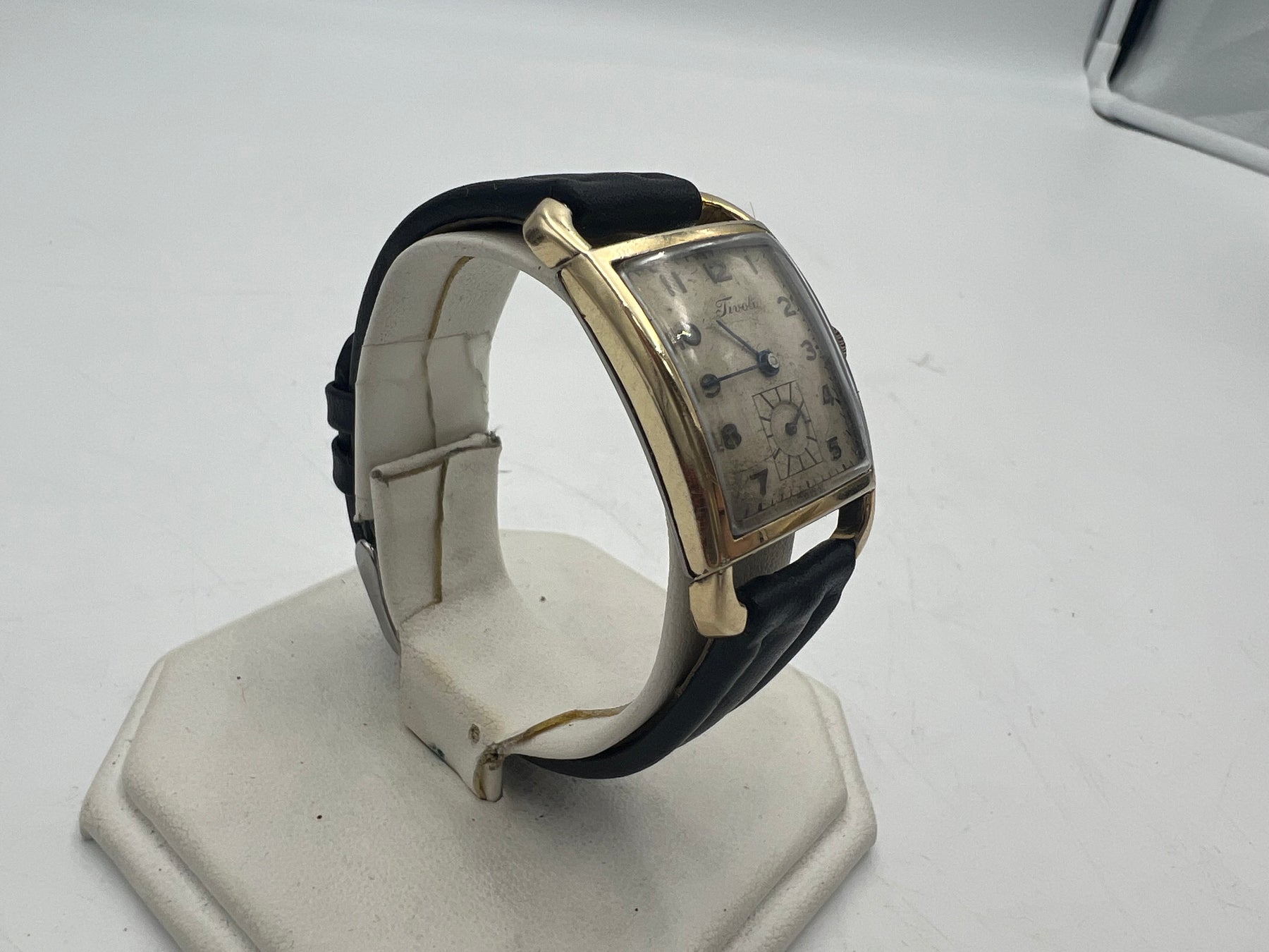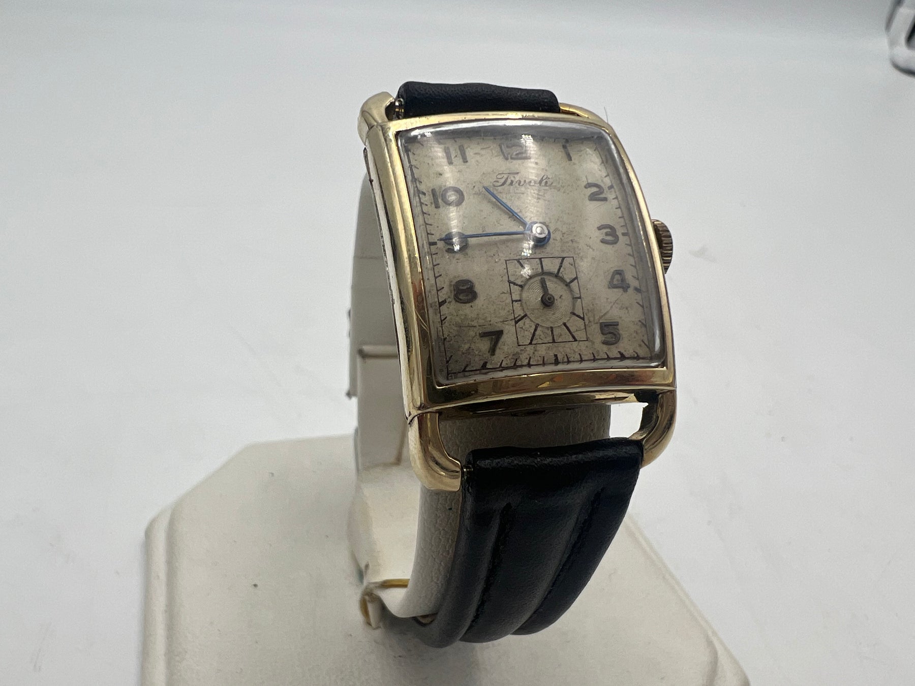 Elevate your style with this classic Tivoli wristwatch. The 10k gold-filled case exudes sophistication and the manual wind movement ensures accurate timekeeping. The small seconds feature adds a touch of elegance to this versatile timepiece, making it perfect for both formal and casual occasions. Crafted for men, this Tivoli wristwatch is a must-have accessory for any watch enthusiast. The timeless design and high-quality materials make it a valuable addition to any collection. With its reliable mechanical movement and stylish appearance, this wristwatch is sure to impress.