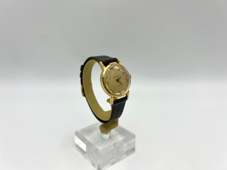 This Helbros wristwatch features a classic design ideal for both formal and casual occasions. The gold dial color adds a touch of elegance to the timepiece. The manual winding movement ensures that the watch keeps accurate time. The watch is perfect for men who appreciate a timeless style. The brand's reputation for quality craftsmanship speaks for itself. This wristwatch is a must-have for any watch collector or anyone looking for a reliable and stylish timepiece.