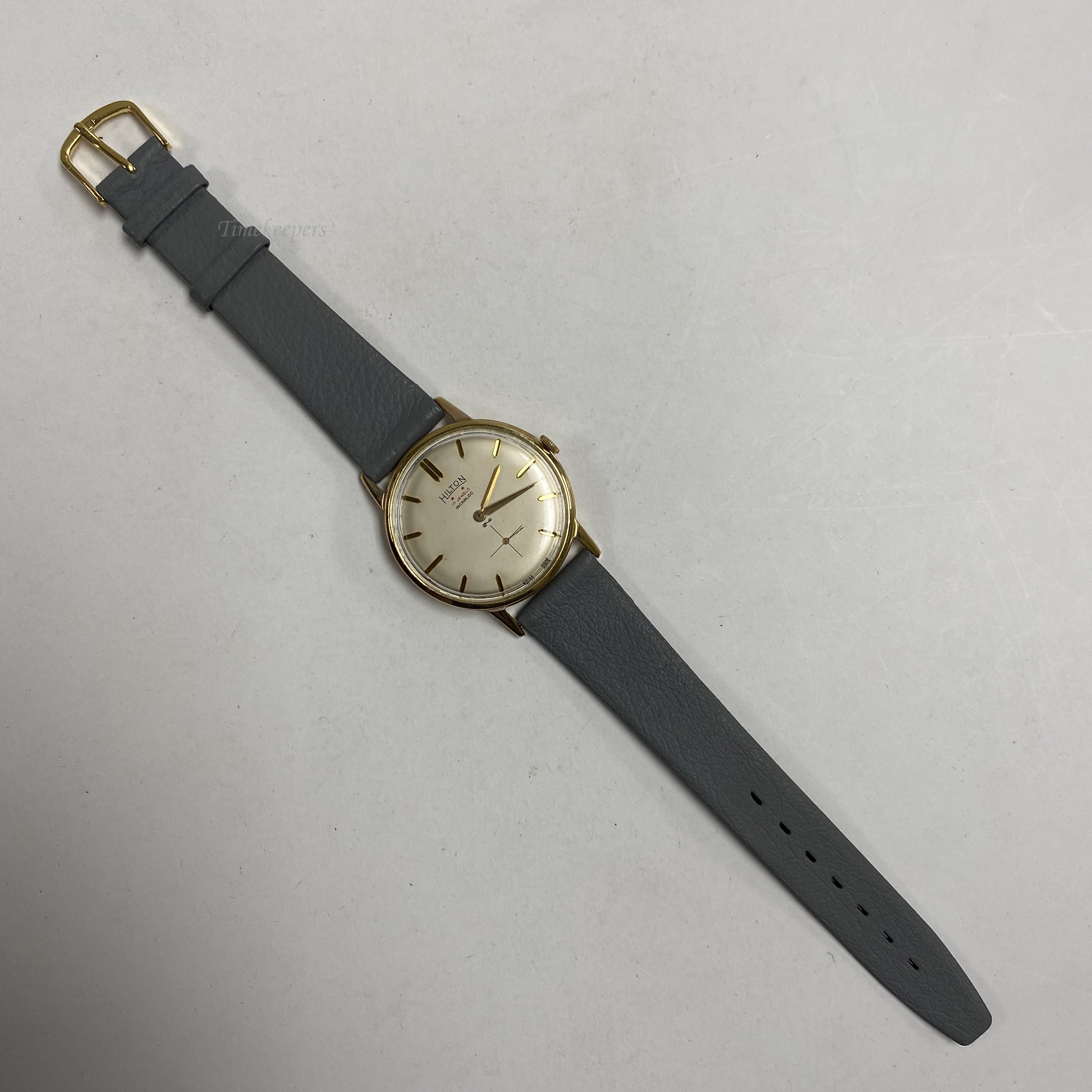 f439 Vintage Hilton Incabloc Swiss Mechanical Men's Wrist Watch Gold Tone 17J