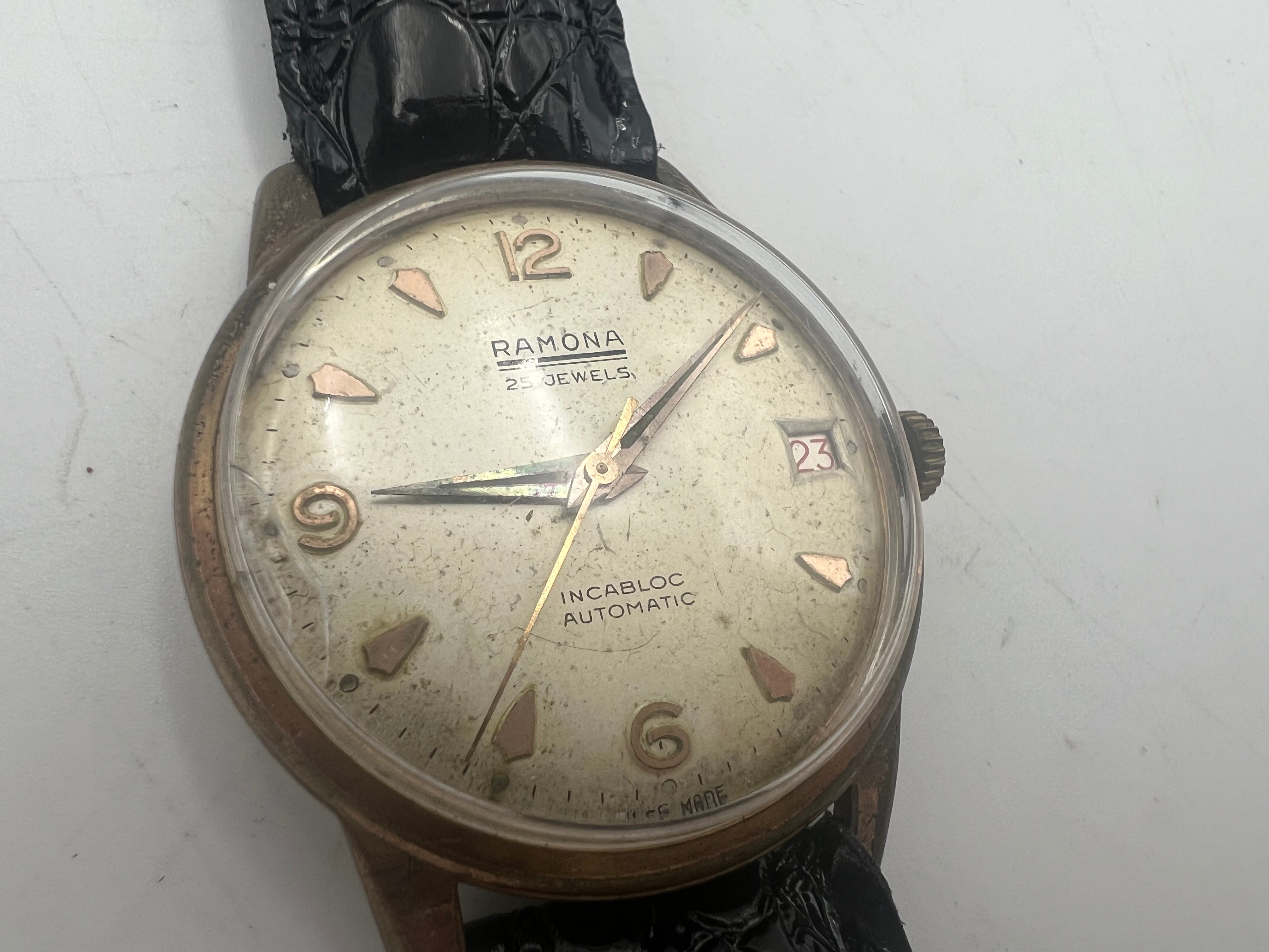 u253 Ramona 1960s 25 Jewel Date Incabloc Automatic Watch
