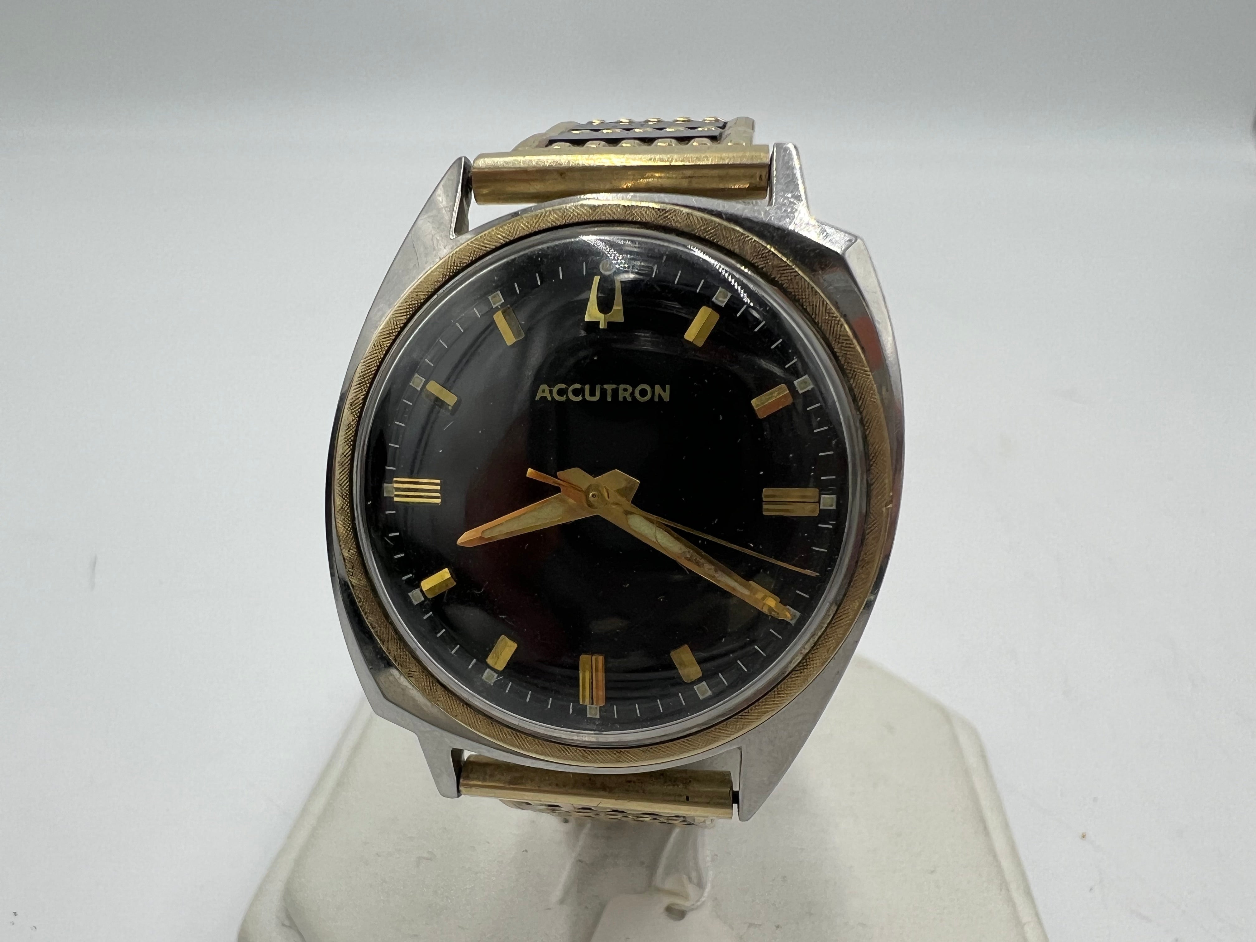 u074 Bulova Accutron 10kt Gold Filled Bezel Black Dial