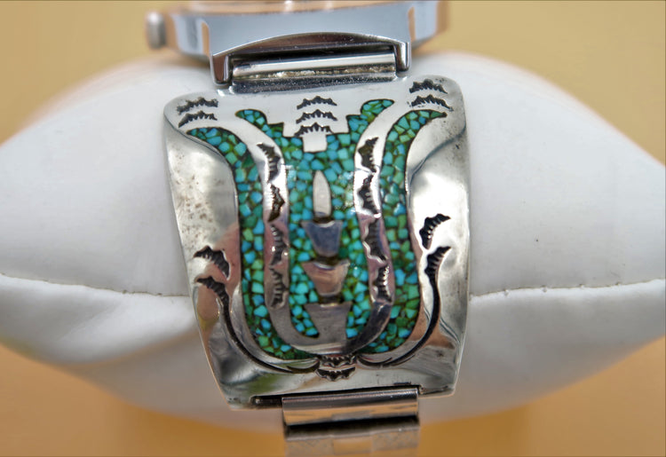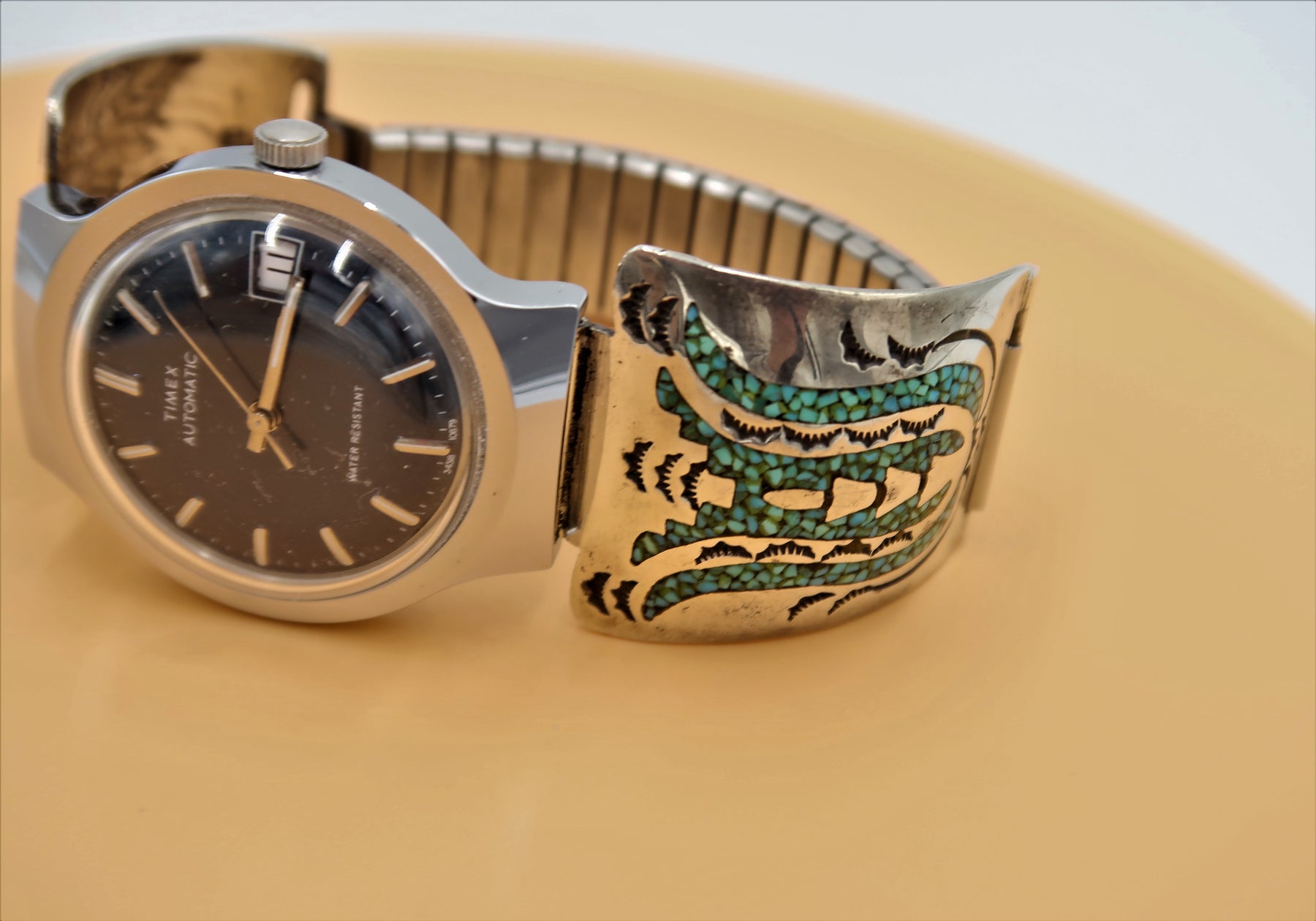 For Sale:  (1) Stunning Navajo Sterling Turquoise Watch Band with Automatic Timex Watch