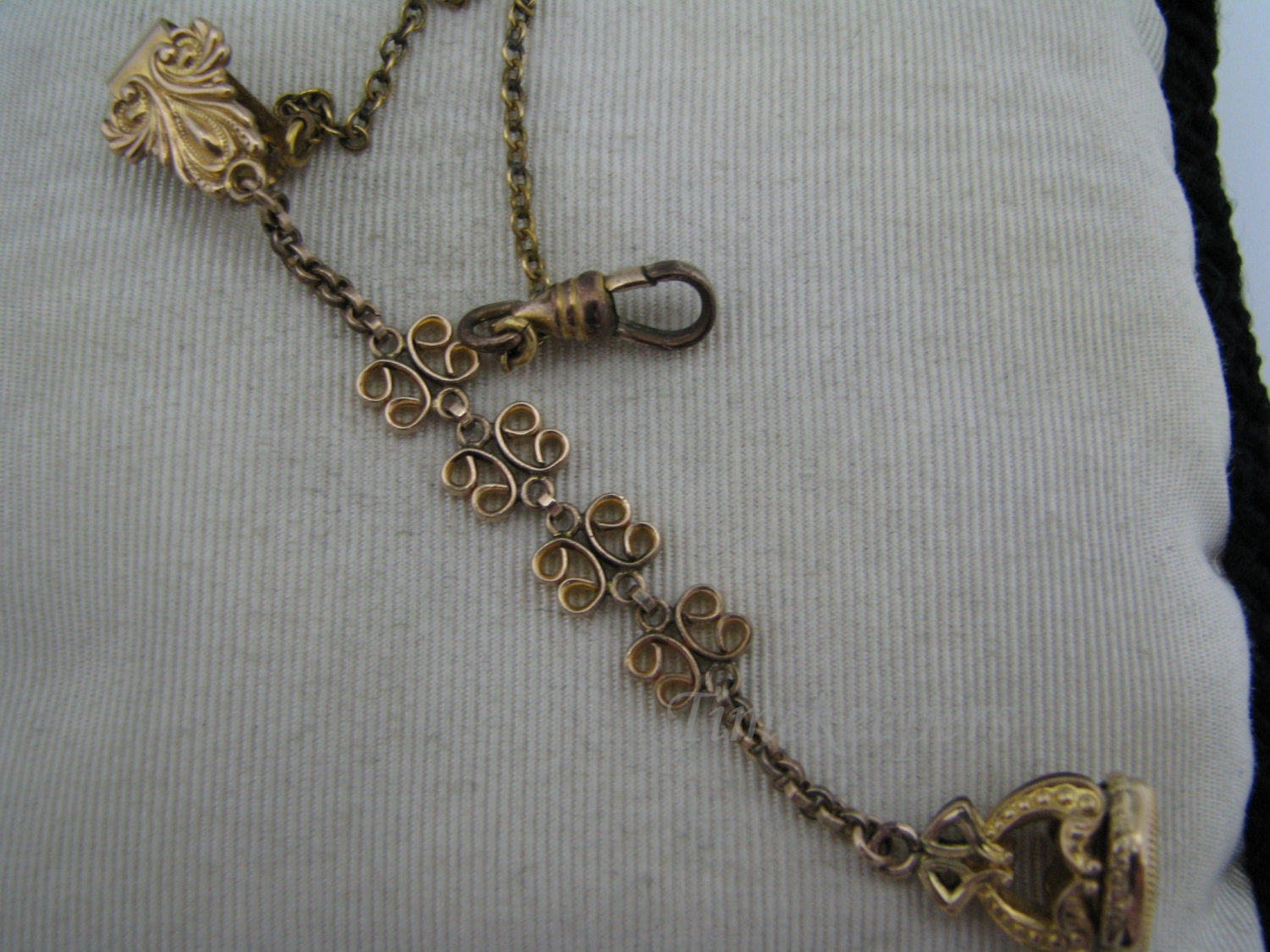 For Sale is: Vintage Gold Filled Filigree Links Watch Fob with Pocket Watch Chain