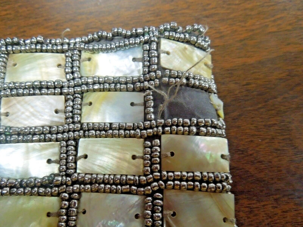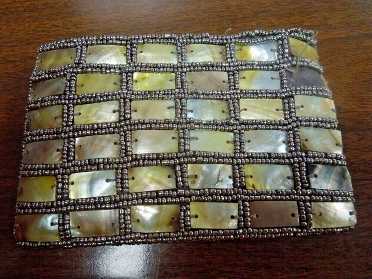 For Sale: (1) r586 Mother Of Pearl Shell and beaded Clutch Bag Purse Pouch Wristlet