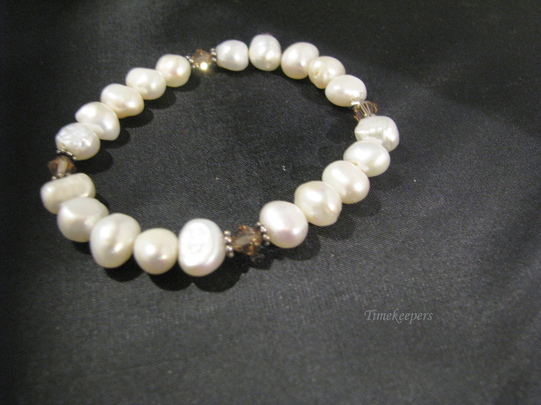 For Sale: Lovely Stretch Pearl and Citrine Bead Bracelet PLEASE READ ENTIRE DESCRIPTION BEFORE PURCHASING Pre-owned item. No visible flaws, please see pictures for details. Sold as is, as seen on pictures. Bracelet with fresh water pearls. Will fit any size wrist. Specifics:
