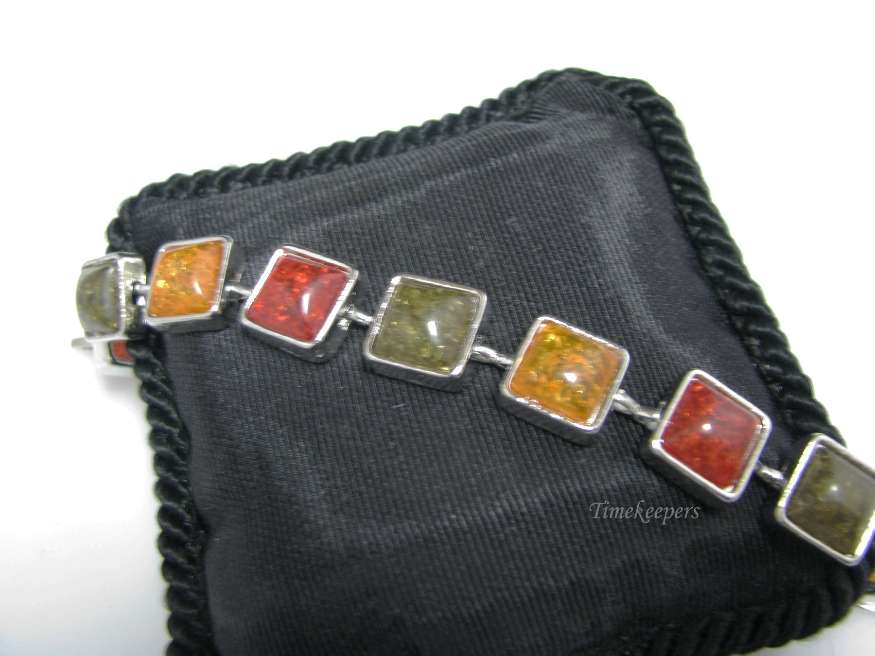 For Sale: Retro Silver Tone Bracelet With Sparkly Acrylic Stones