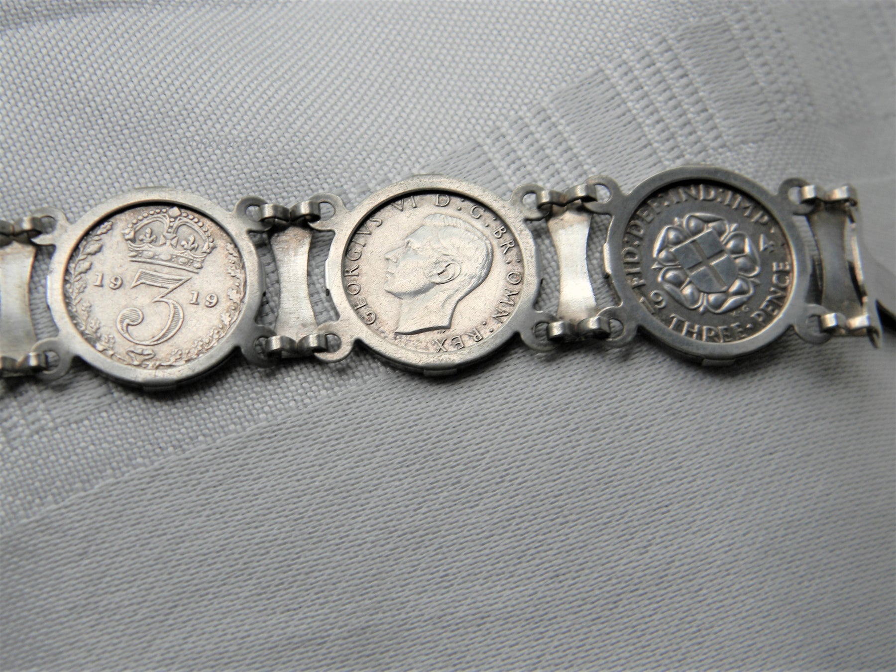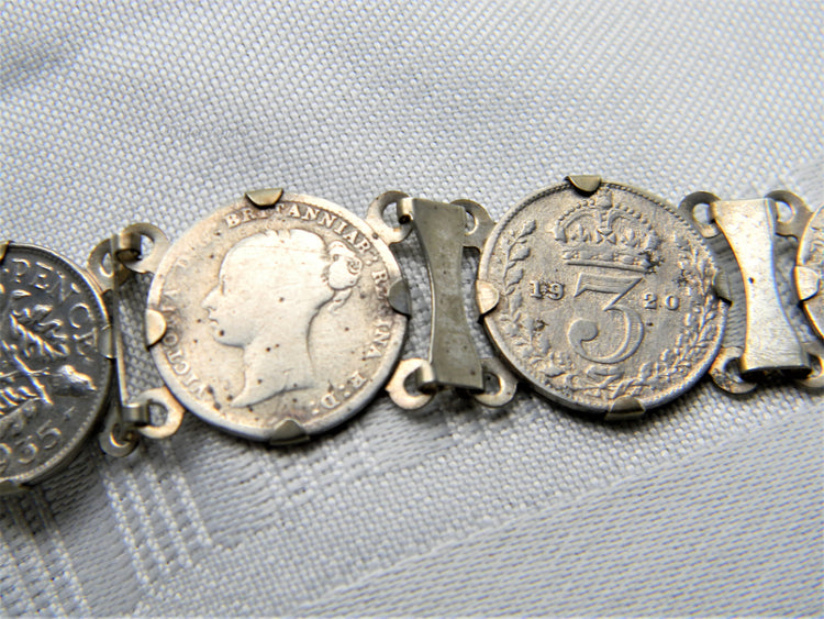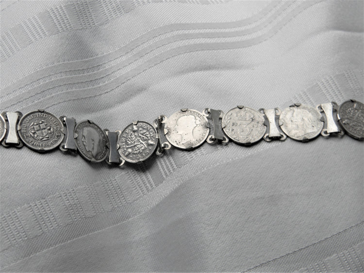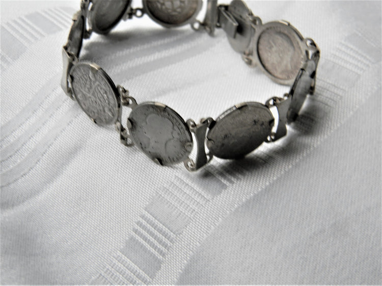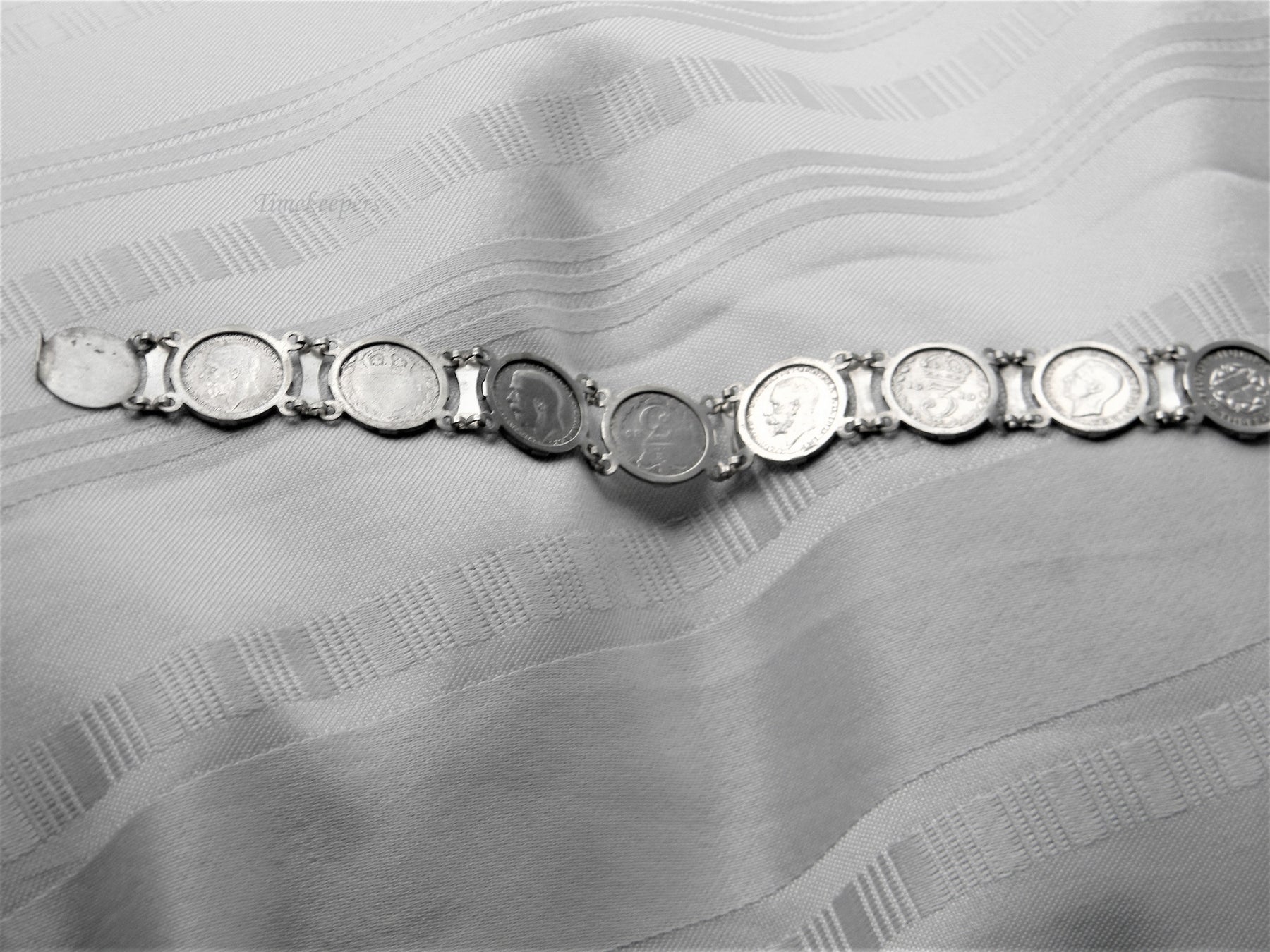 For Sale: Vintage WWII British Silver Coin Sweetheart Bracelet