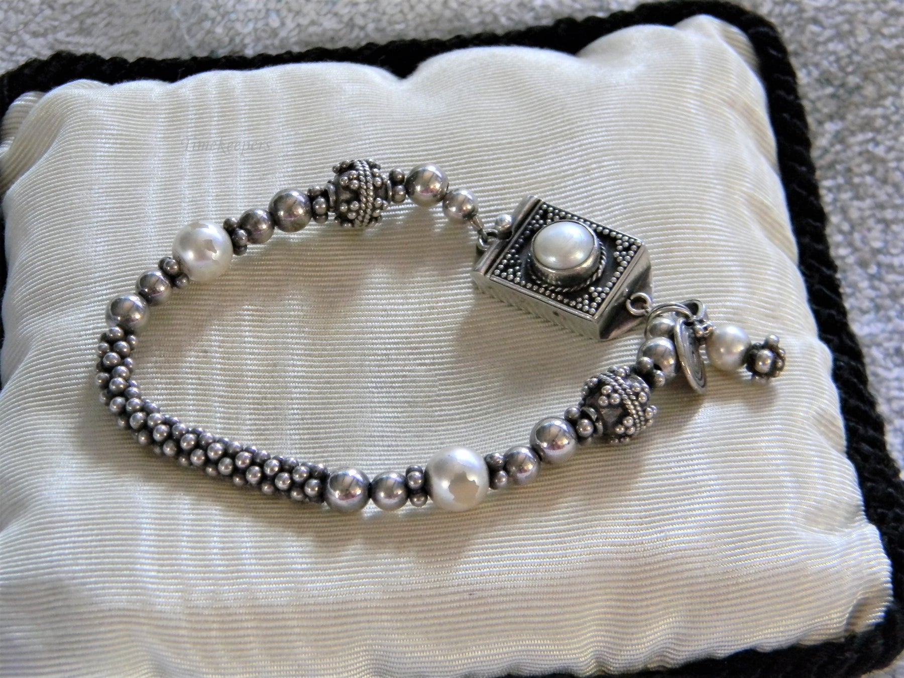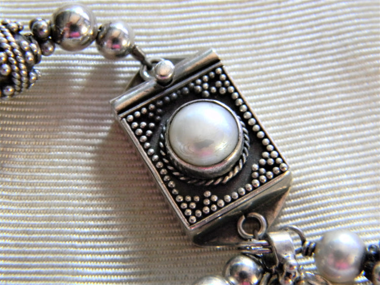 j799 Beautiful Beaded Sterling Silver Bracelet with Faux Pearls and Slide Clasp