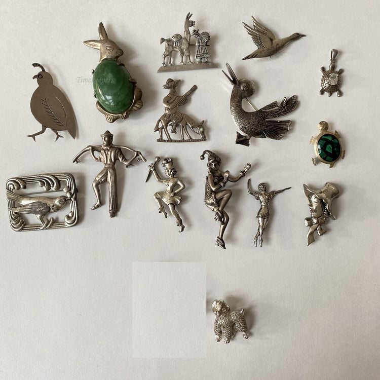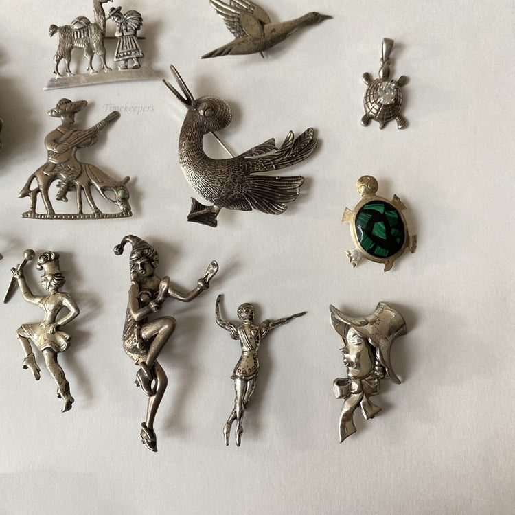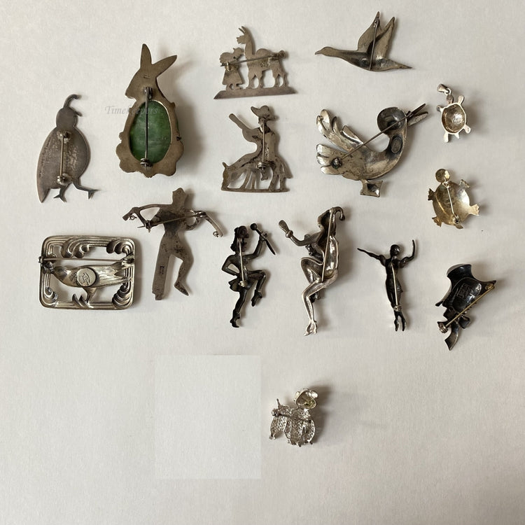 Vintage Sterling Silver 15pc Brooch Pins Collection. Variety of Sizes, Styles and Decor.