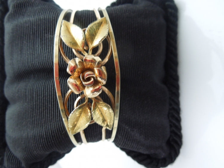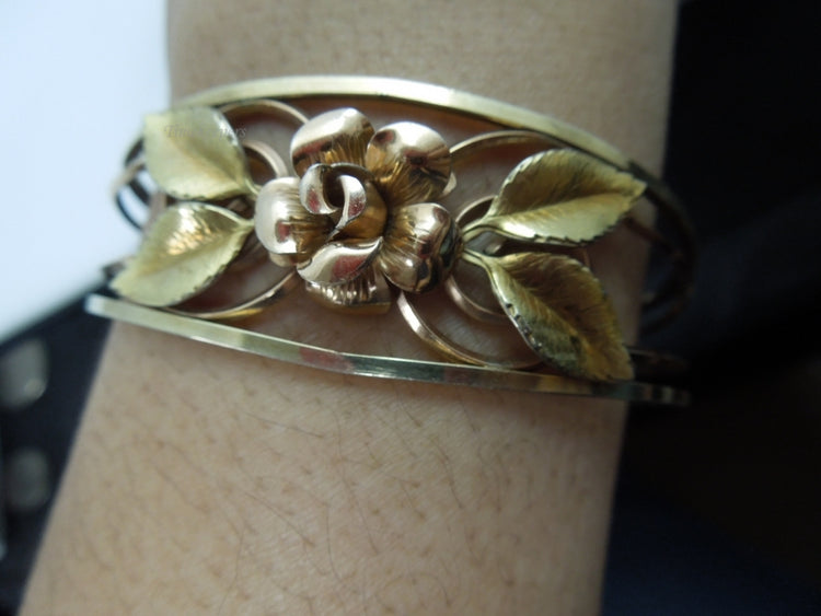 This is Vintage Krementz 14k Gold Overlay Rose Flower Cuff Bracelet For Pretty Lady/Girl