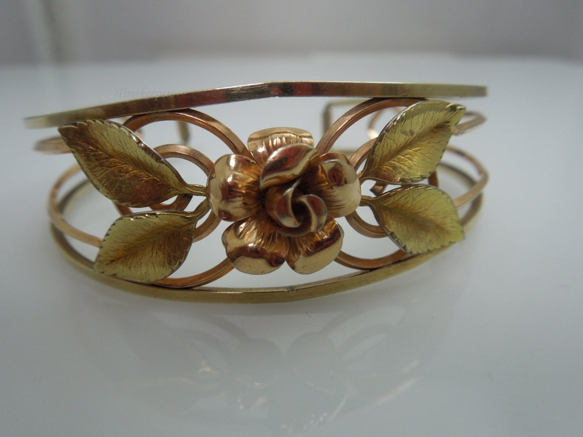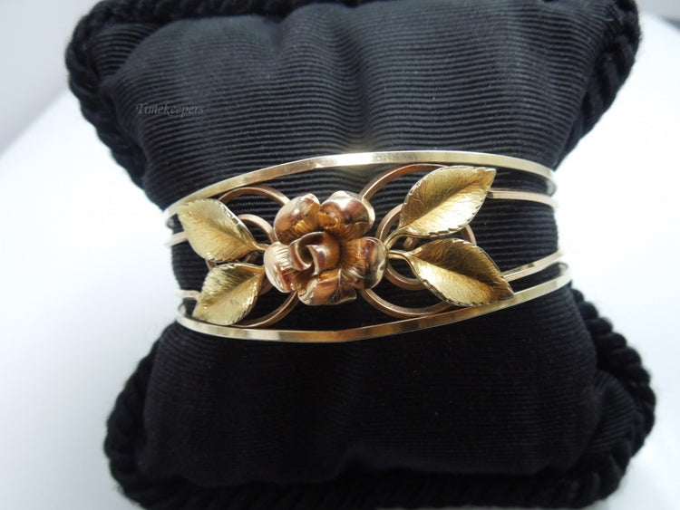 For Sale: (1) q098 Vintage Krementz 14k Gold Overlay Rose Flower Cuff Bracelet