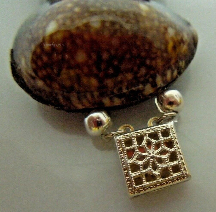 For Sale: (1) r822 Vintage Handmade Brown White Shell Wood Mounted Bracelet Sterling Silver Clasp